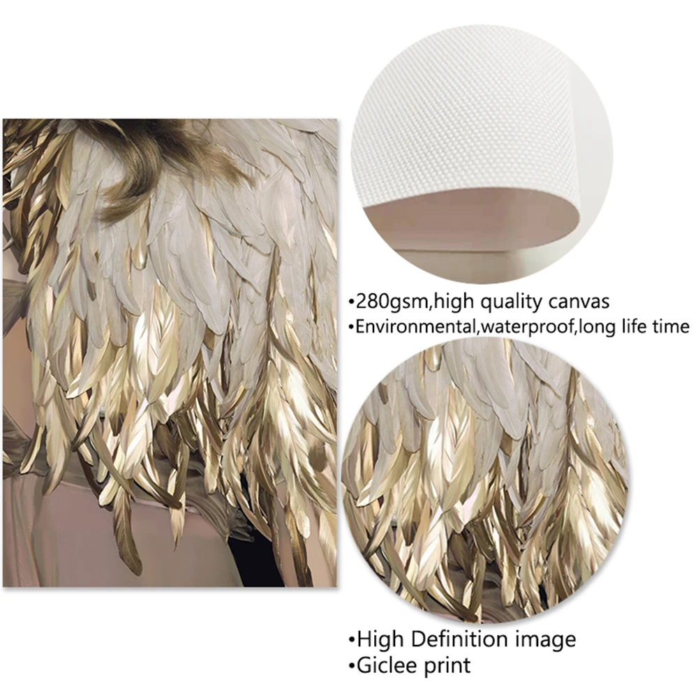 Постер и печать на холсте с изображением золотых крыльев и перьев в скандинавском стиле, уникальное современное белое настенное искусство для гостиной, спальни, коридора, декор