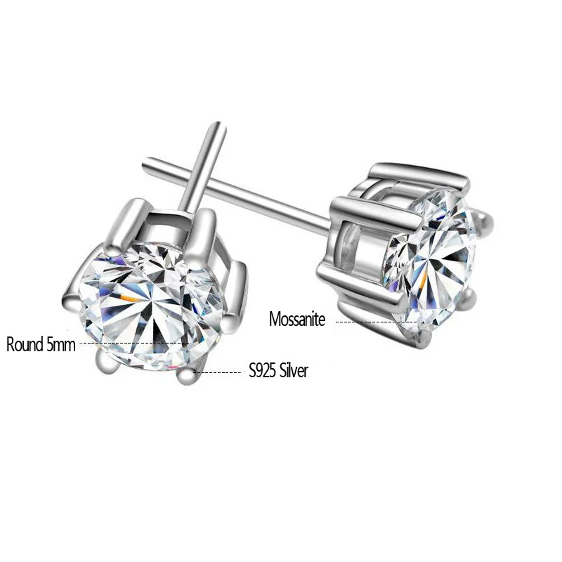 Mossanite серьги-гвоздики Sterling925 серебряные серьги с муассанитом для Для женщин для помолвки, свадьбы, годовщины тонкой Jewewlry Основной камень: mossanite Размер камня: Круглый 5 мм