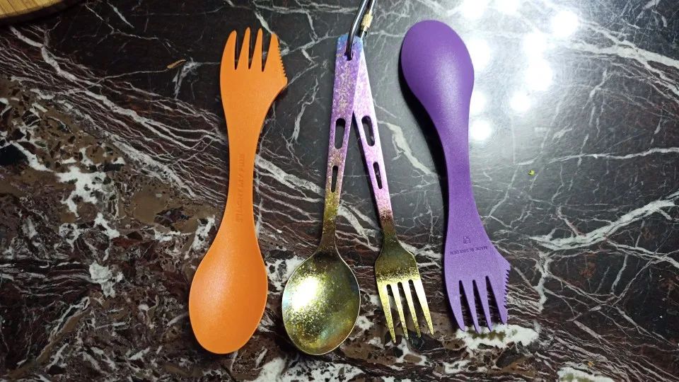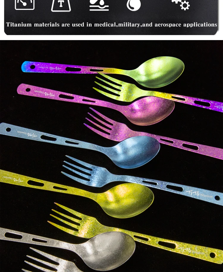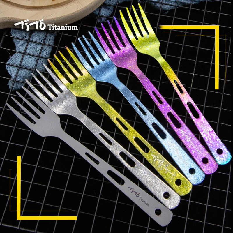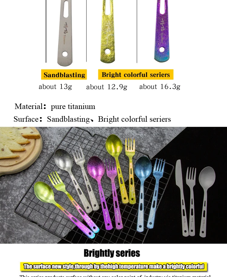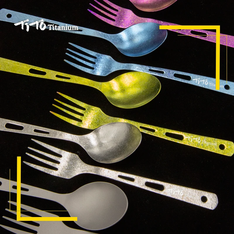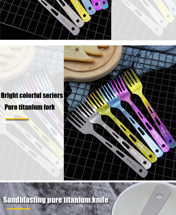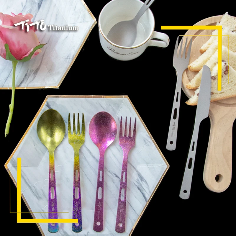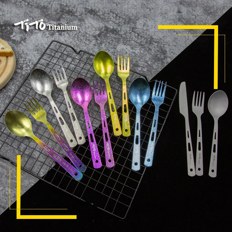 Титановая комбинированная посуда для кемпинга, титановая вилка из сплава, коллекционный нож для путешествий, практичный набор из 3 предметов Titan