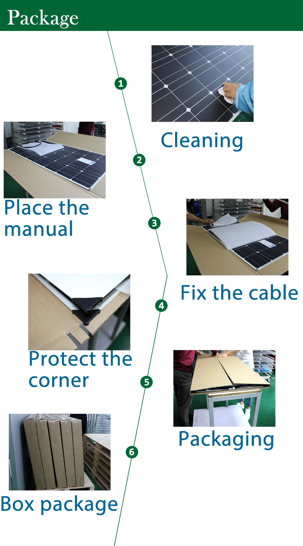 * Антибликовые ПЭТ поглощают больше солнечного света, сохраняя более высокий выход. * 0,5 мм EVA держать панель солнечных батарей более прочным. * 21% Высокая эффективность преобразования солнечных элементов. * TPT, чтобы сохранить срок службы солнечной панели более 10 лет.