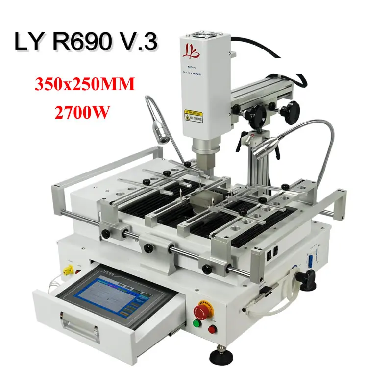 Наладочная станция BGA LY R690 V.3, новая версия паяльных станций, горячий воздух, сенсорный экран, 3 зоны, 2700 Вт, 350x250 мм, ИК рабочая зонаВидео:
