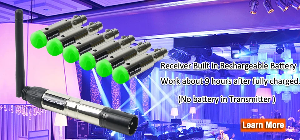 Этот перезаряжаемый приемник используется для сценического светильник. Передает стандартные данные протокола DMX512 (генерируемые консолью). С ним вы можете управлять сценическим светильник беспроводным способом.