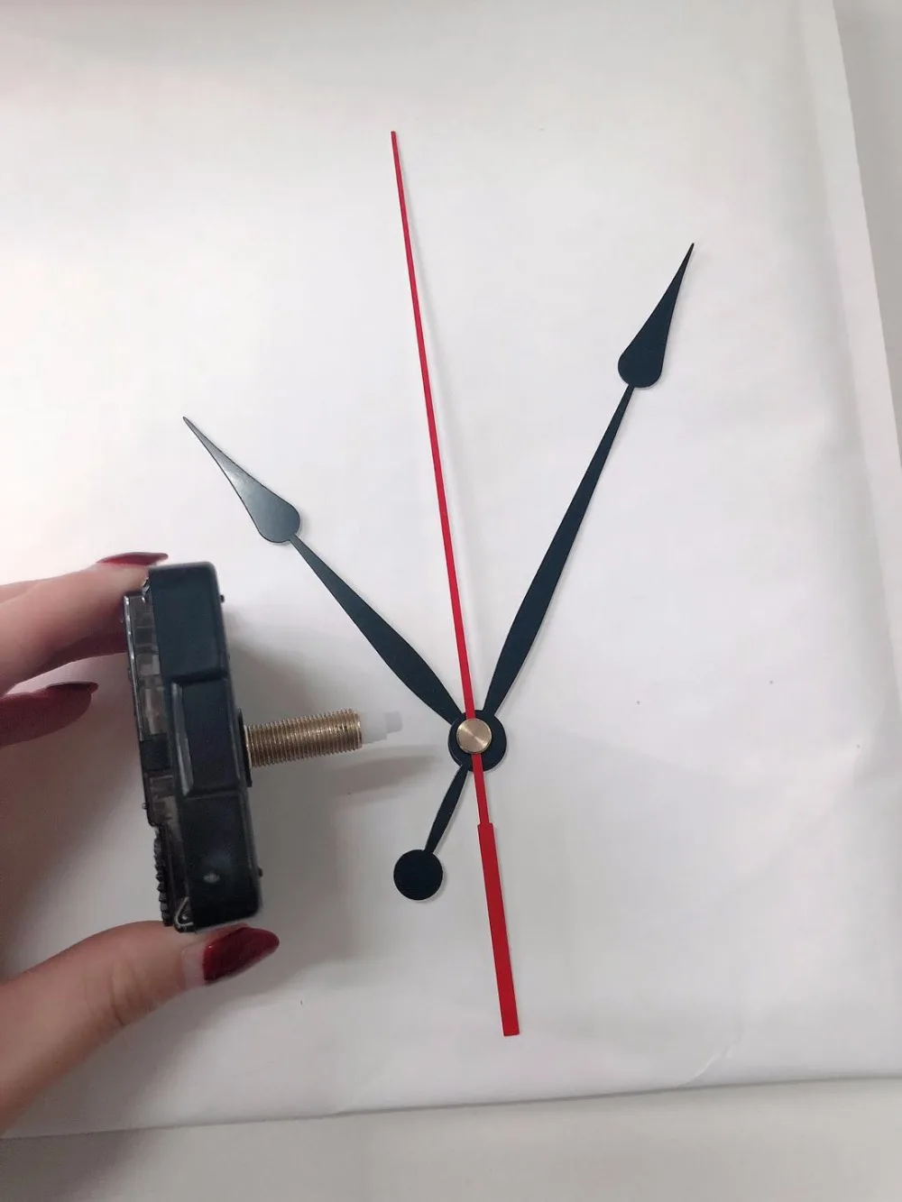 Посылка включает в себя: часовой механизм + стрелки + аксессуары + металлический крючок