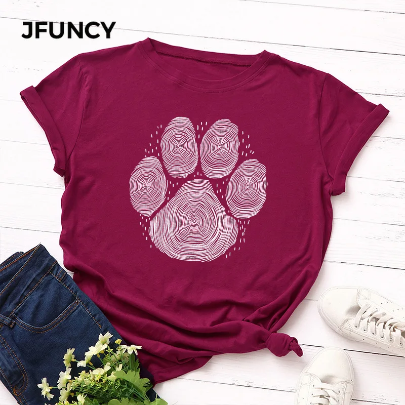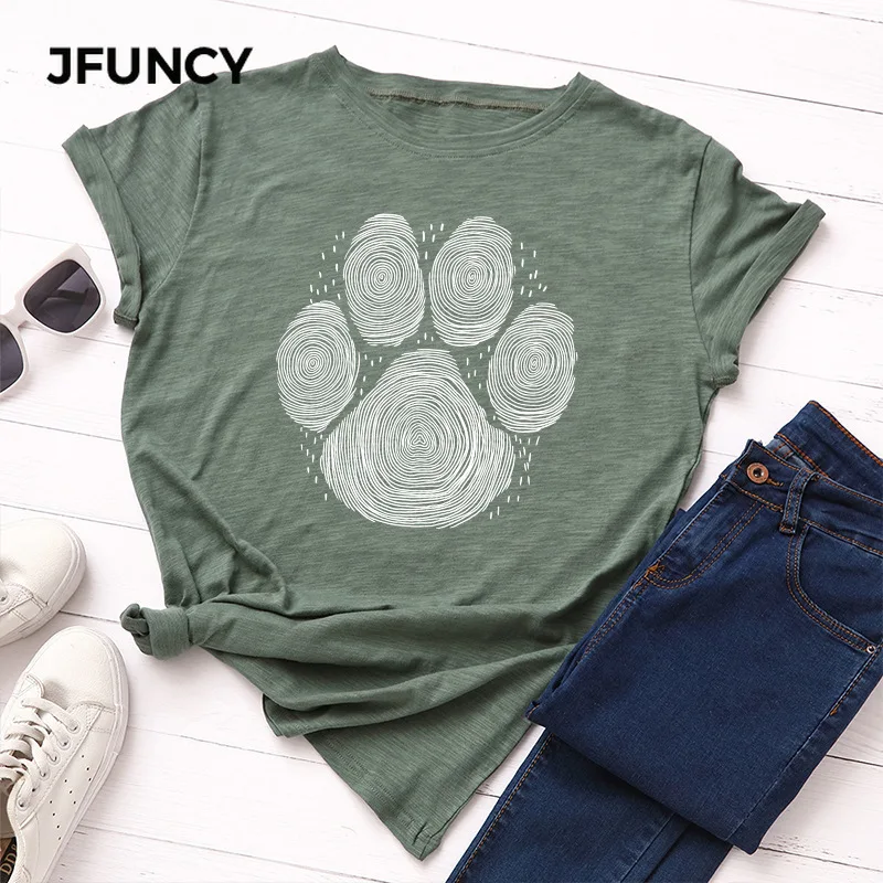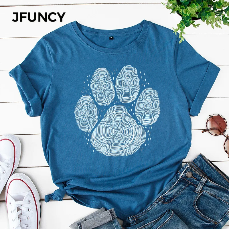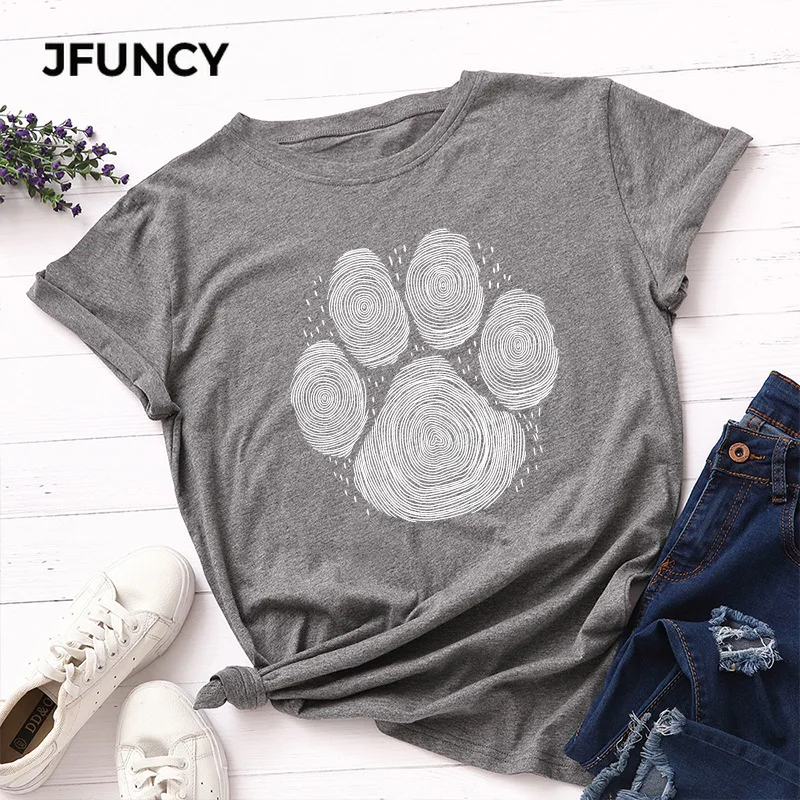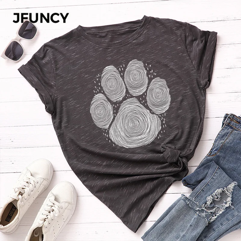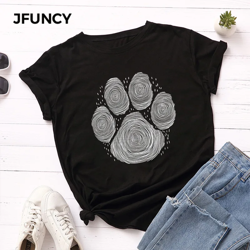 JFUNCY 2020 Летняя женская футболка размера плюс женская футболка хлопковая футболка с коротким рукавом принт собаки отпечаток пальца Женская Повседневная футболка