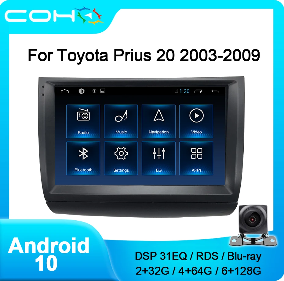 Автомобильный мультимедийный плеер, радио, для Toyota Prius 20 2003-2009, Android 10,0, 8-ядерный процессор, 6 + 128, Gps-навигация
