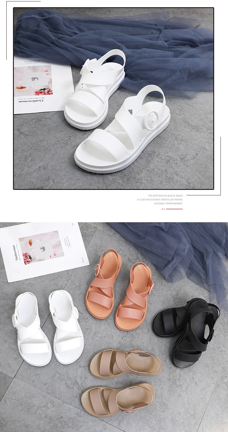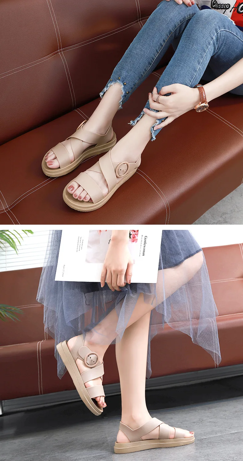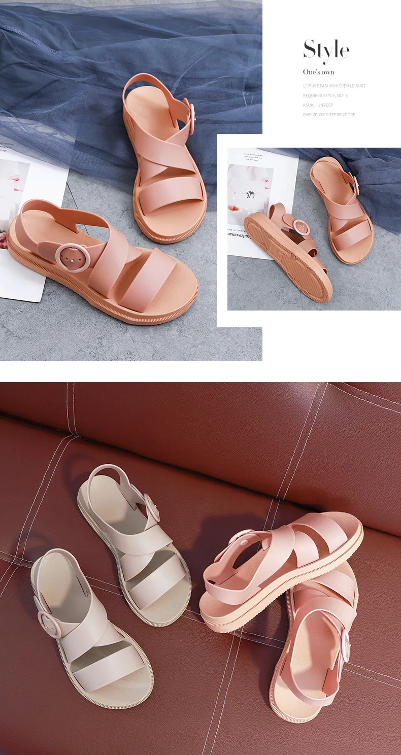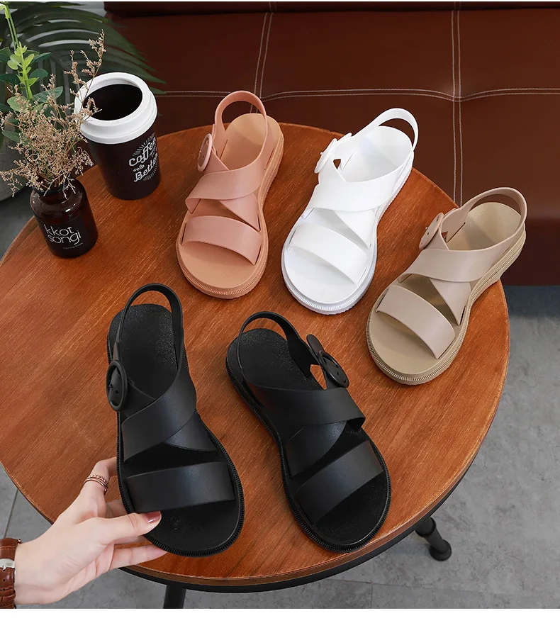 Повседневные женские сандалии SWYIVY из ПВХ, однотонная женская обувь, лето 2020, женские сандалии на плоской подошве с ремешком с пряжкой, Модные женские сандалии