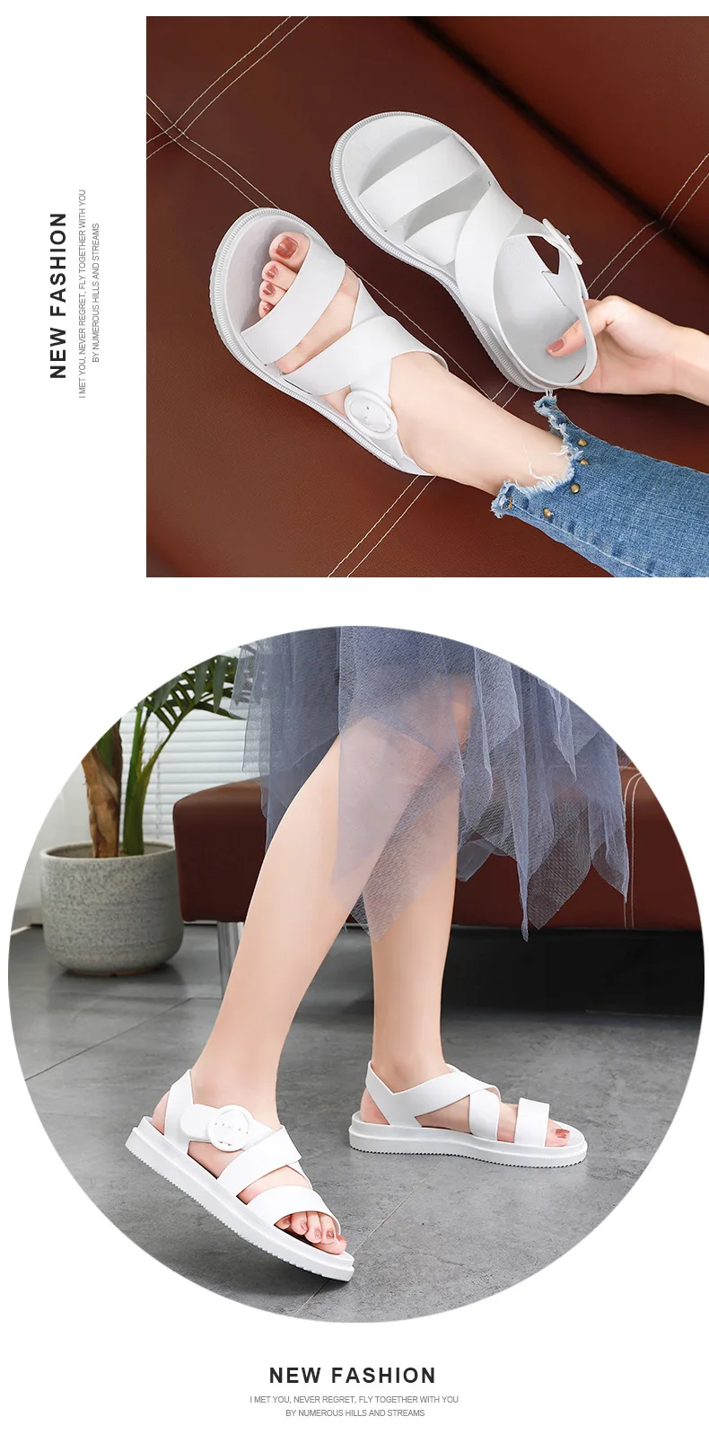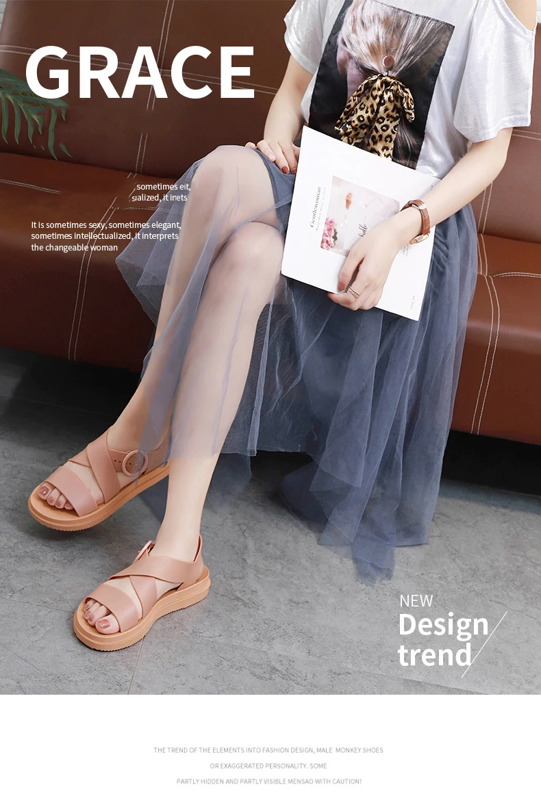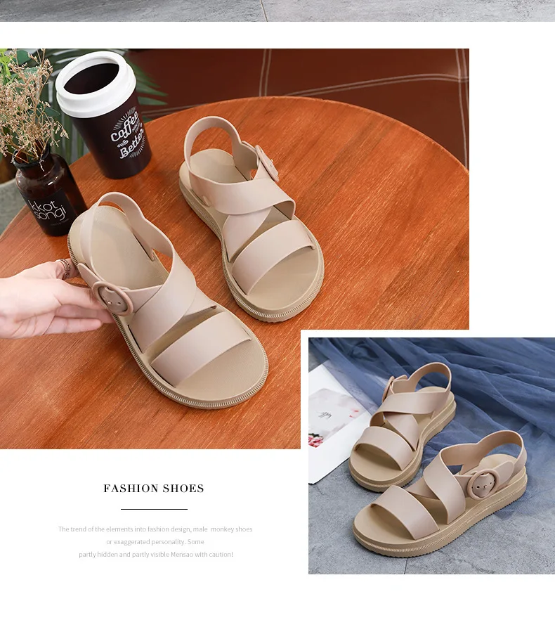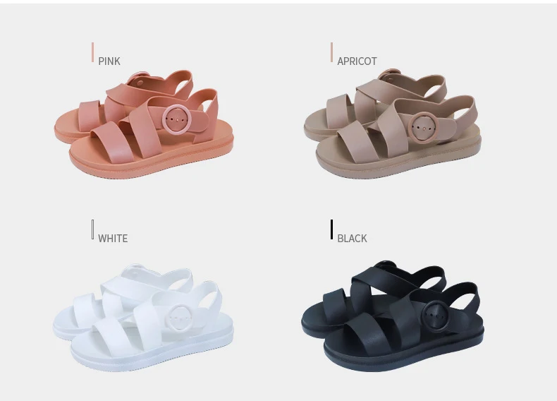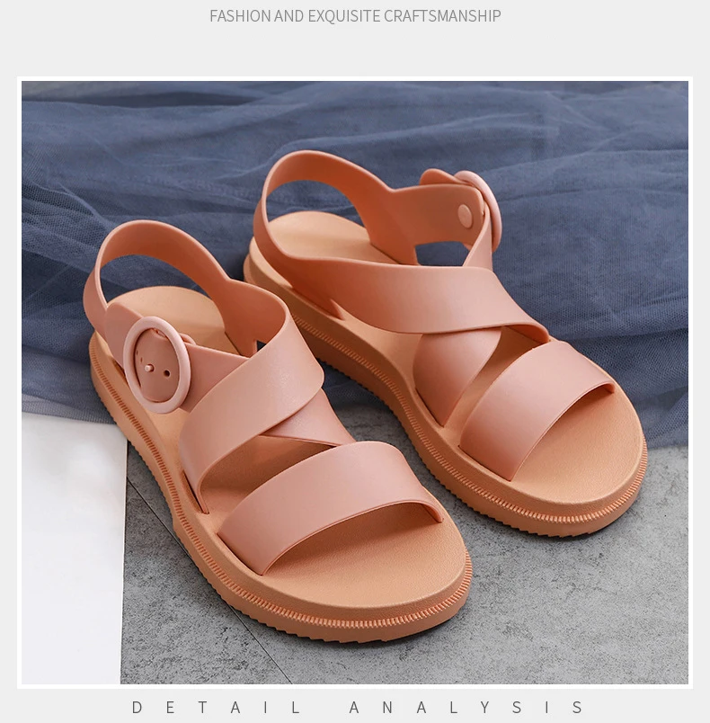 Повседневные женские сандалии SWYIVY из ПВХ, однотонная женская обувь, лето 2020, женские сандалии на плоской подошве с ремешком с пряжкой, Модные женские сандалии