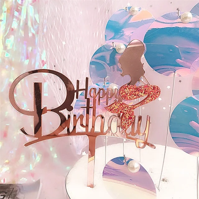Новинка, акриловый Топпер для торта русалки, 1 шт., флаг для торта на свадьбу, день рождения, флажки для торта, персонализированное украшение торта