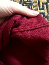 очень тонкий, синтетика, огромный минус- отутюженные налицо места сшива деталей.