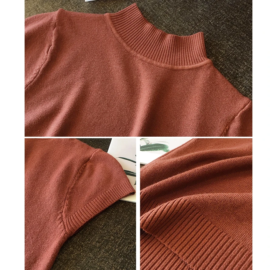 Женский трикотажный свитер gkfnmt, летний корейский пуловер с коротким рукавом и высоким воротником, 2021