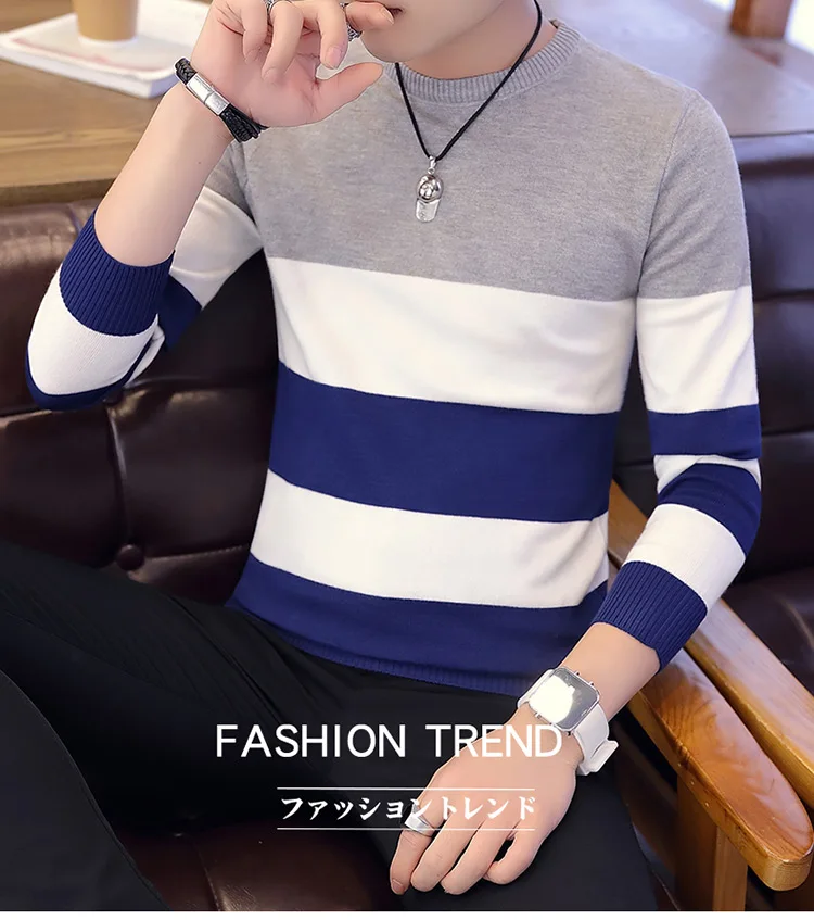 New Spring Knitted Sweaters Casual Men Sweater Wavy Stripes O-Neck ...