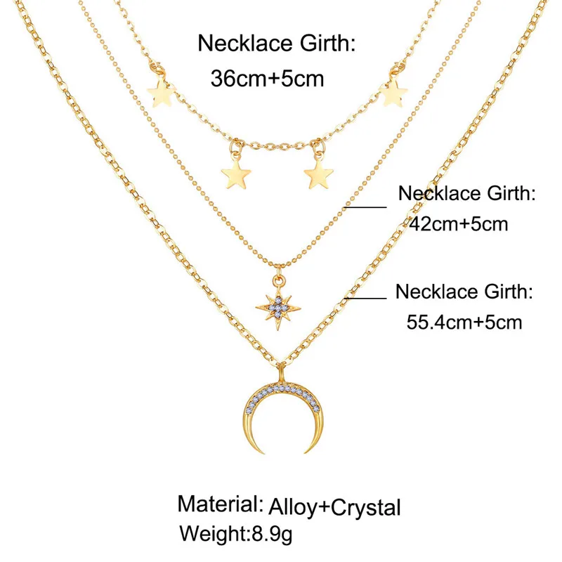 Модная винтажная Звезда Луна Стразы многослойная длинная искусствен...