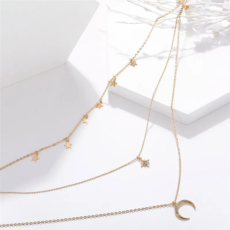 Короткая ключица в стиле Панк Золотая Многослойная ожерелье с Луной...
