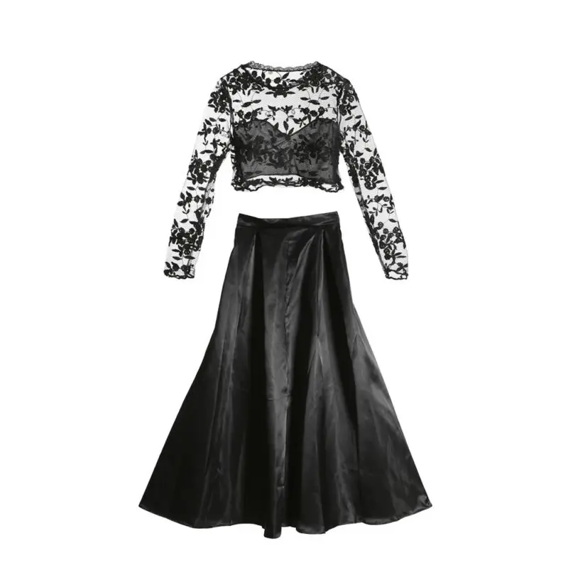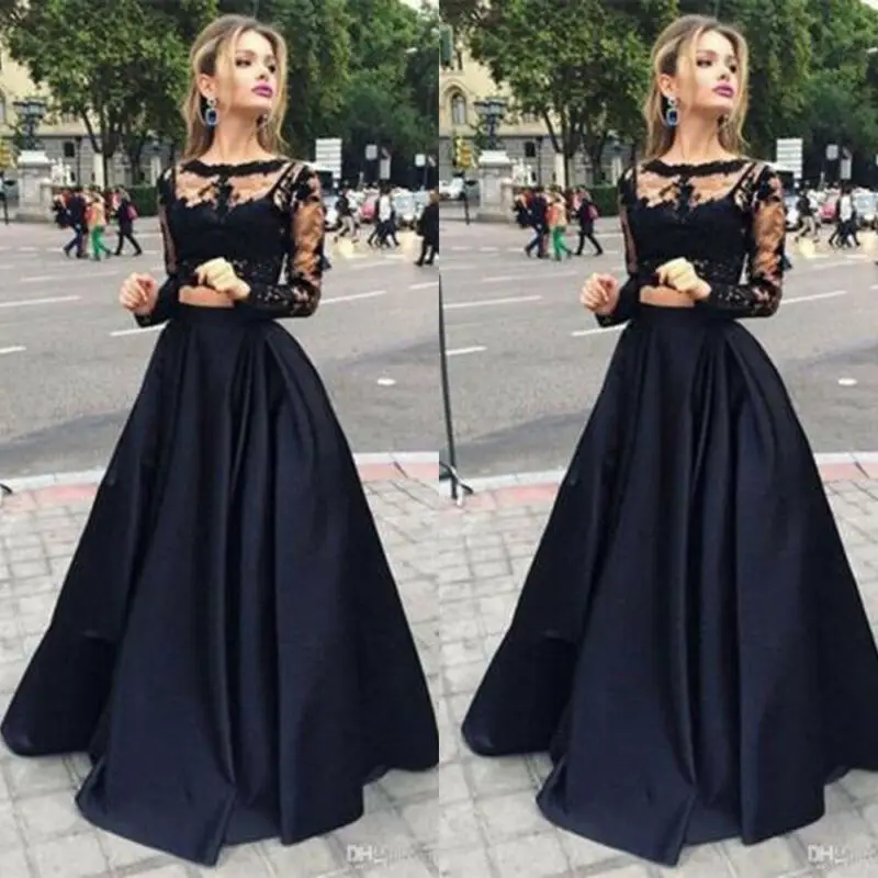 Женский вечерний комплект из двух предметов, вечерний Топ с длинным рукавом и длинное бальное платье для выпускного вечера
