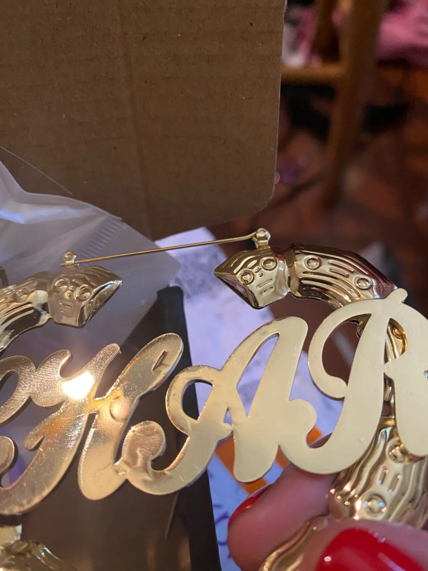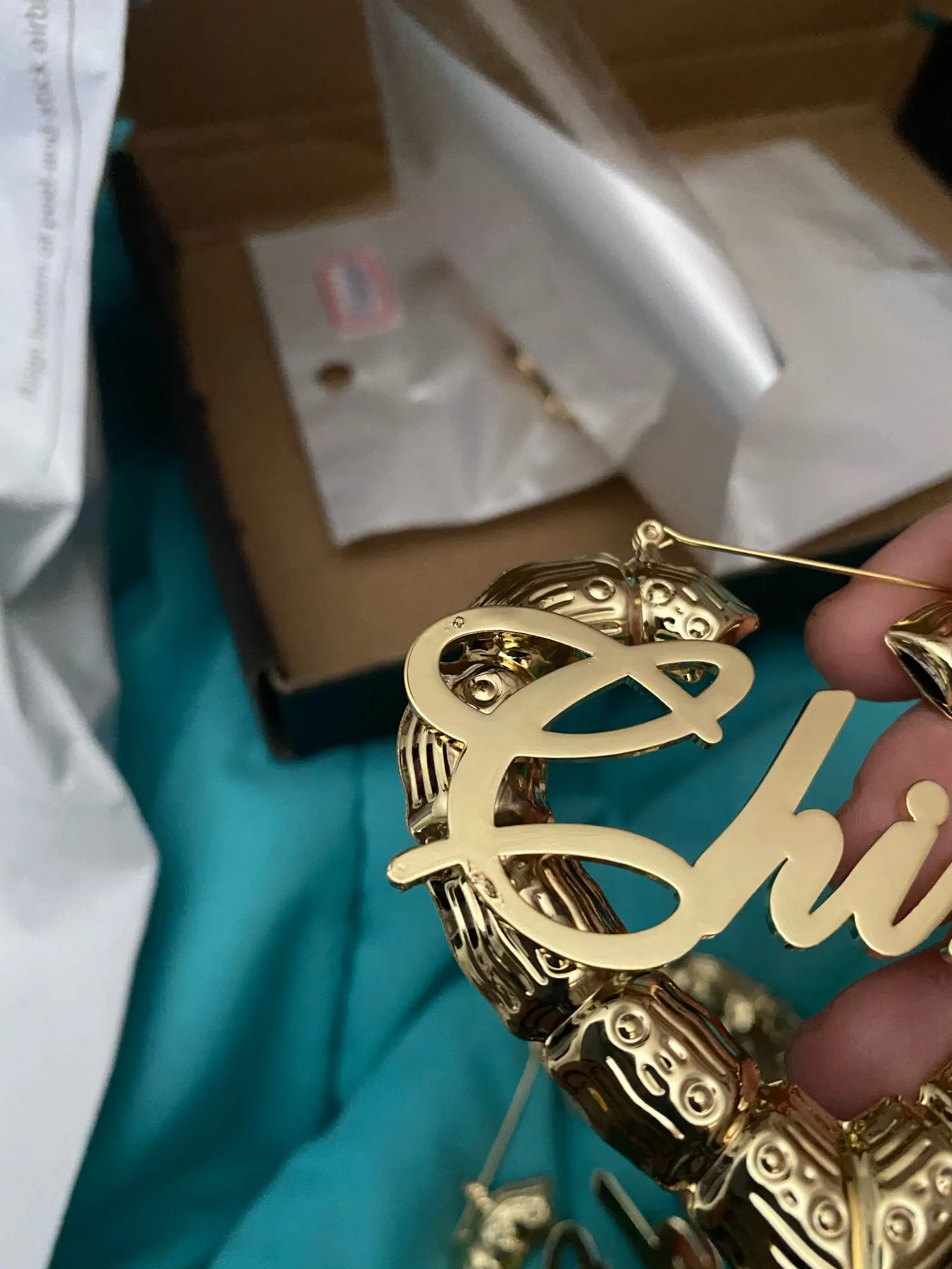 I was Shipped two separate earrings , one said Aiyana and one says Ashley. They were well aware of the shipping issue and instead they told me to wait until after the holiday. Then told me it was shipped already. THE EARRINGS HAD TO SEPARATE NAMES