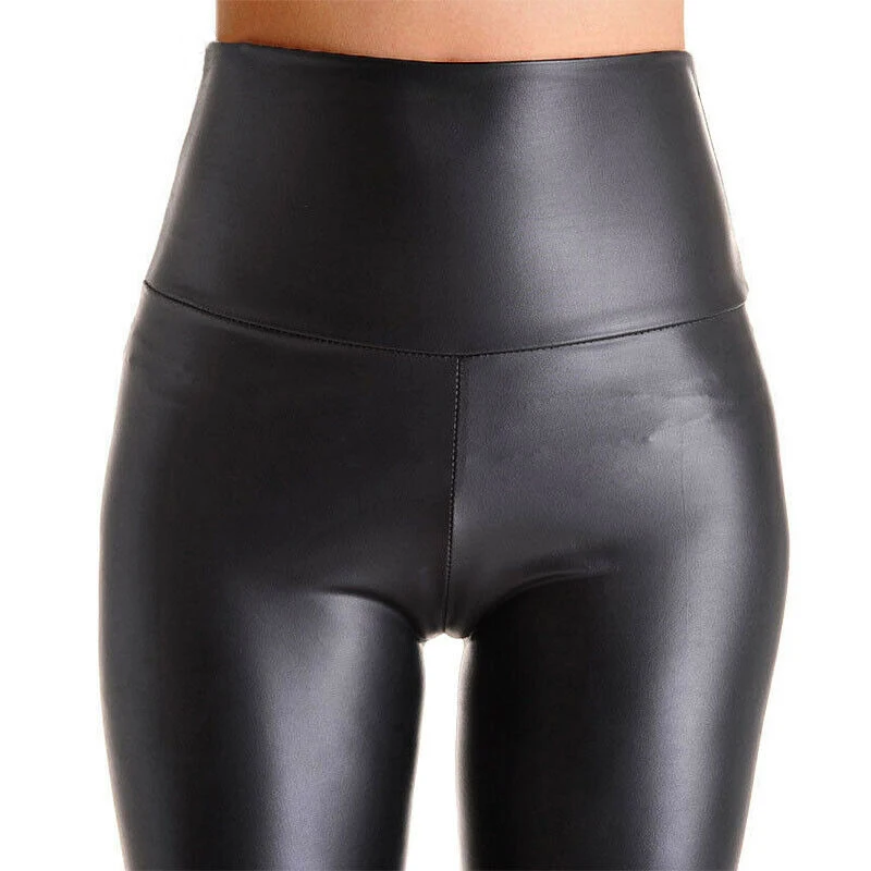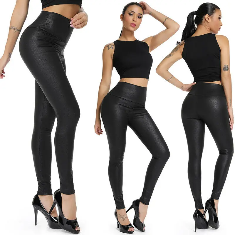 Леггинсы женские черные из искусственной кожи, с высокой талией, пуш-ап