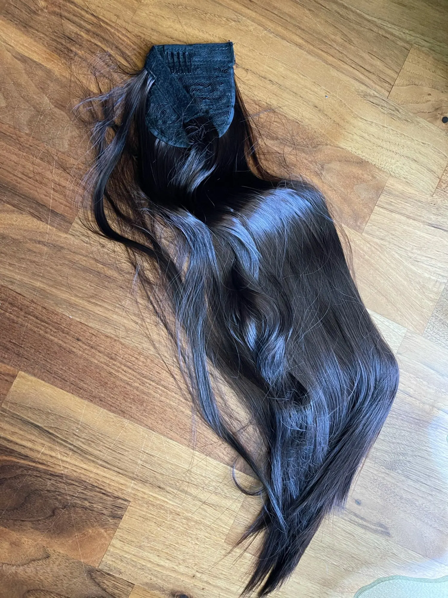 Отличный хвост, как на фото продавца. Волосы вылезают, по толщине и по цвету как мои, идеально совпали с чёлкой 2. Брала ещё и парик у другого продавца, вот он на клоуна с весьма маленькой головой. По частям покупка больше понравилась. Удобное хорошее крепление, но для идеальности надо просить кого-то все это наматывать аккуратно, а не самой, волосы застревают. Возможно использую хвост как накладку для праздничной прически с булавками. Кудряшки даже в мокром виде сформировались) Спасибо.