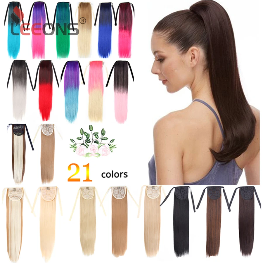 Прямые Синтетические накладные шиньоны leions, длина 21 дюйм, на шнурке, для конского хвоста, термостойкие, для женщин