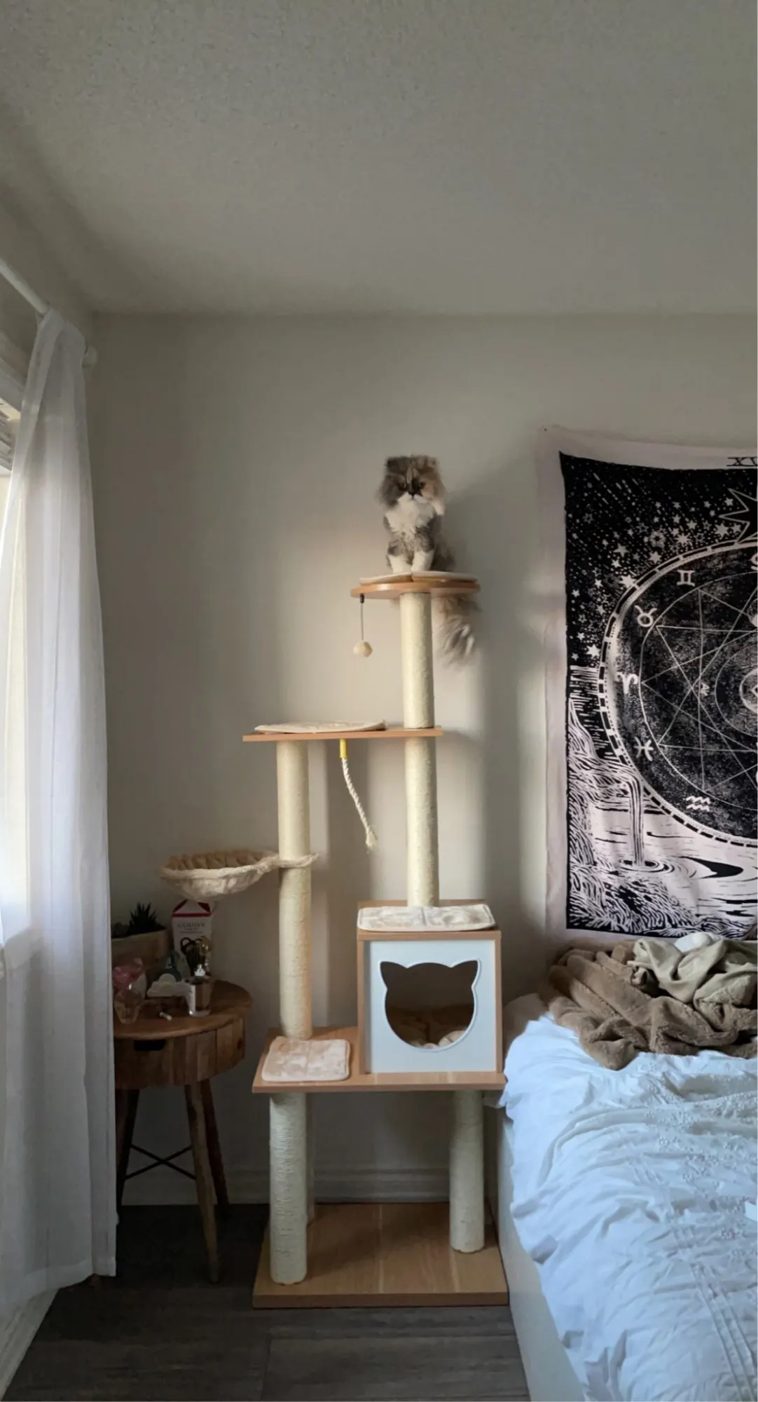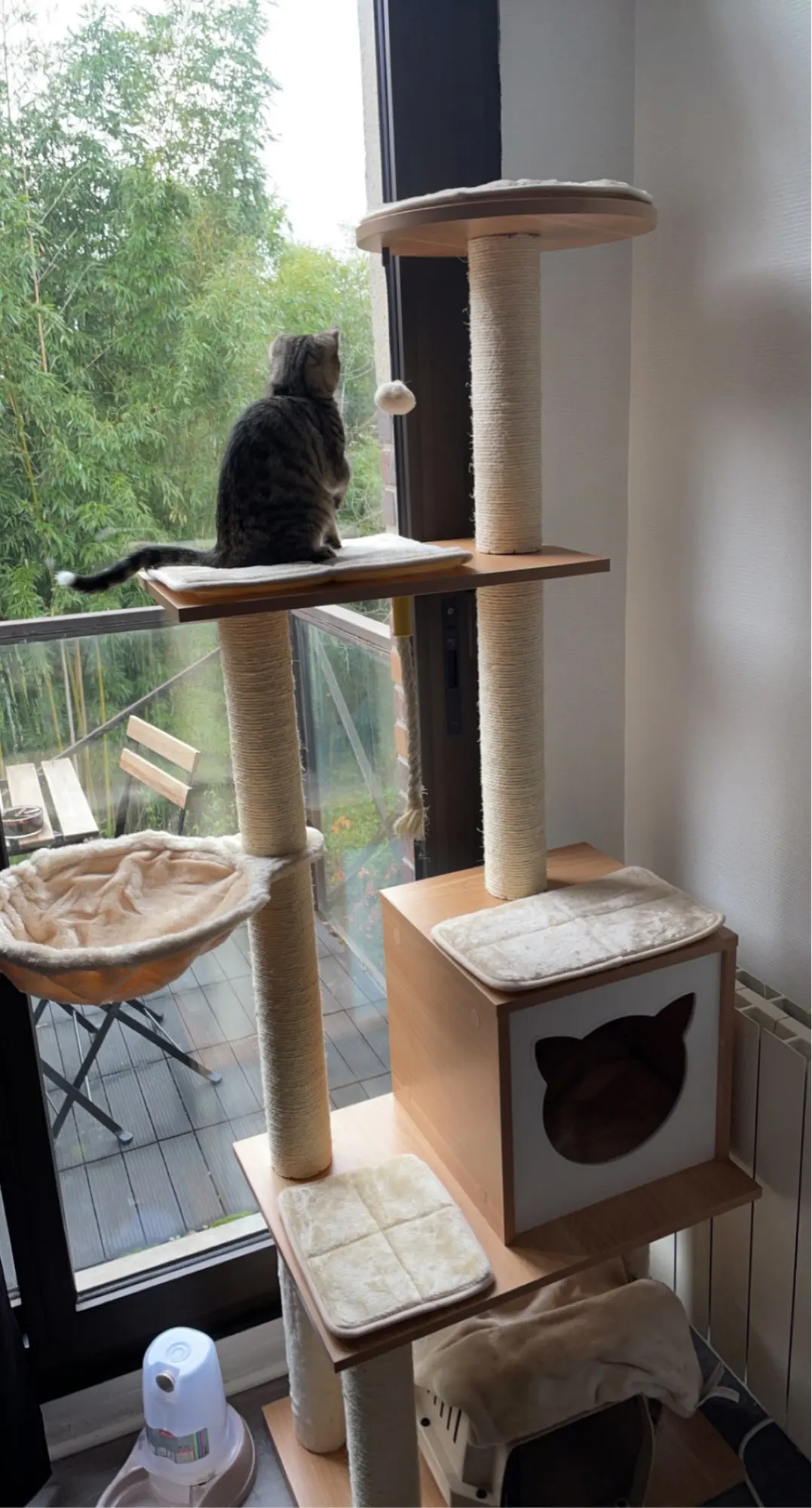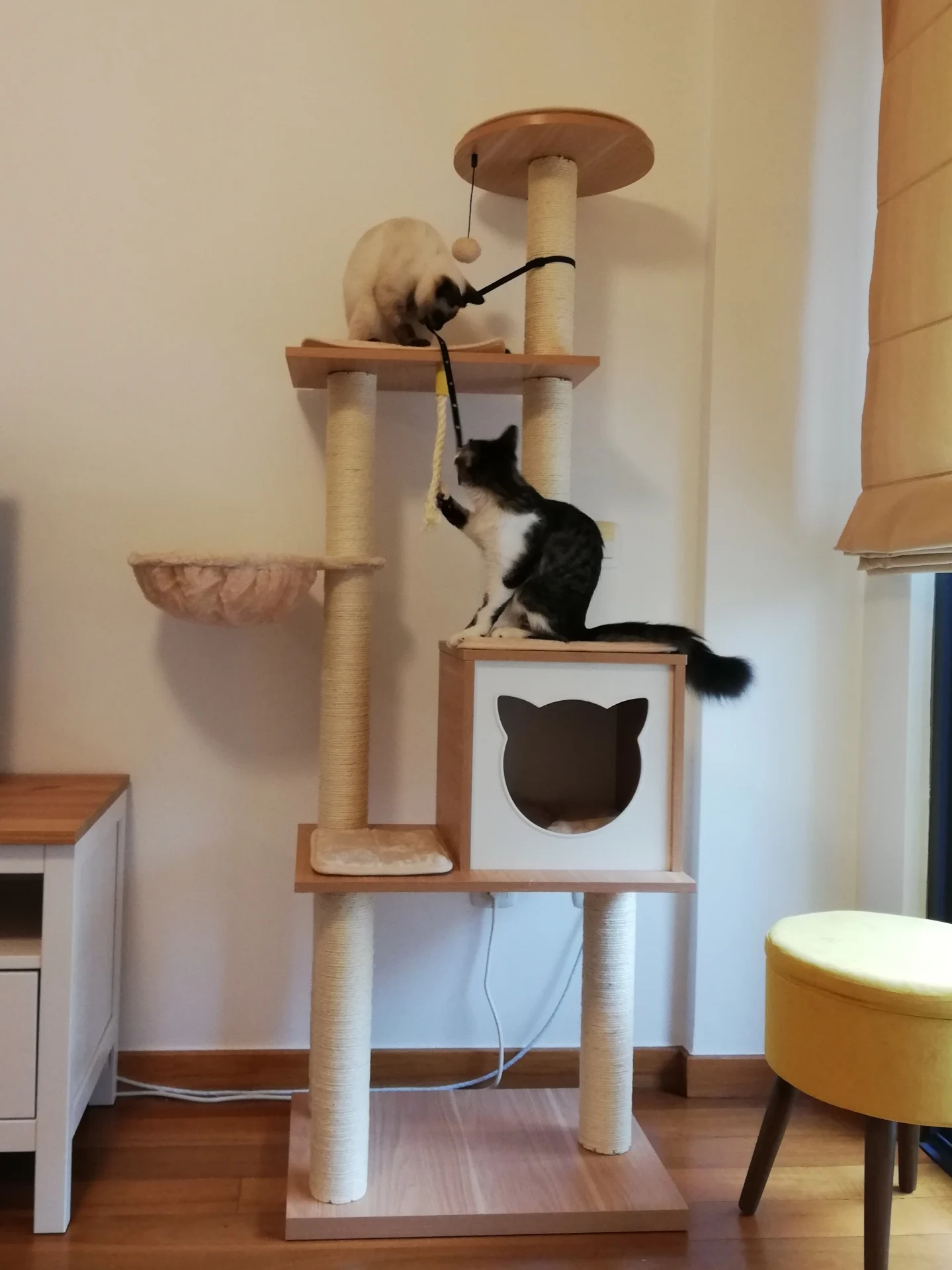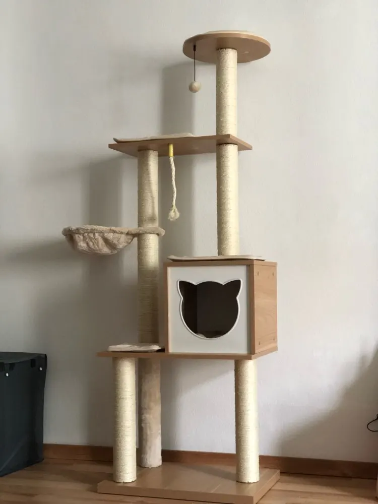 Идеально! Легко собрать самостоятельно в течение часа, хорошее качество и чрезвычайно стабильный, я доволен красивой и практичной кошачьей елкой и на удивление Быстрая доставка компанией DHL, надеюсь, моему мальчику понравится ~~~~
