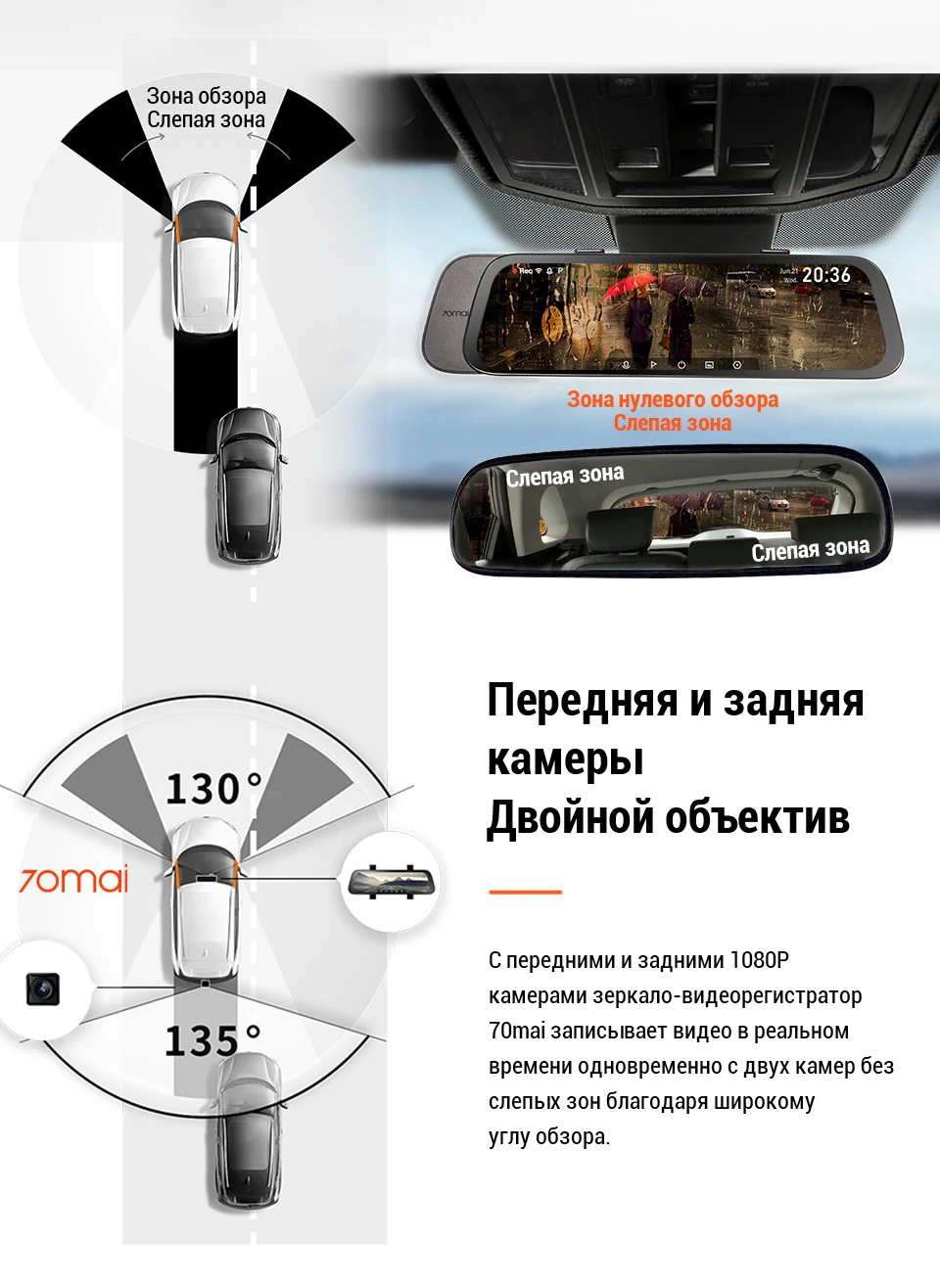 Заказывал сотруднику. Пришла не рабочая задняя камера. Продавец выслал новую. Жду. От себя скажу что у меня А800 70mai. и мне нравится больше чем это зеркало. Продавец надёжный рекомендую.