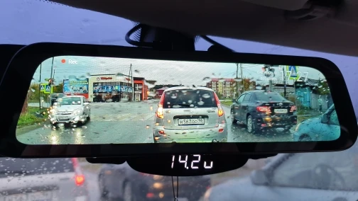 Хорошего качества регистратор. Можно перевести картинку зеркала в 3 позиции (камера переднего вида, камера заднего вида и отключение чтобы использовать как зеркало заднего вида) при включении задней передачи камера автоматически переключает на камеру заднего вида с графическим помощником парковки.