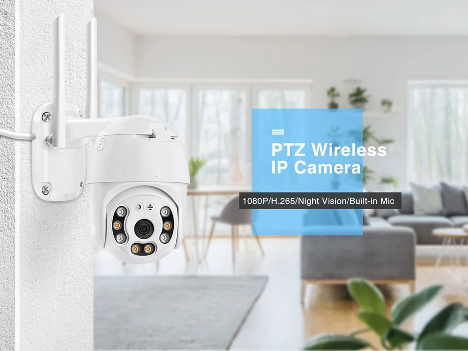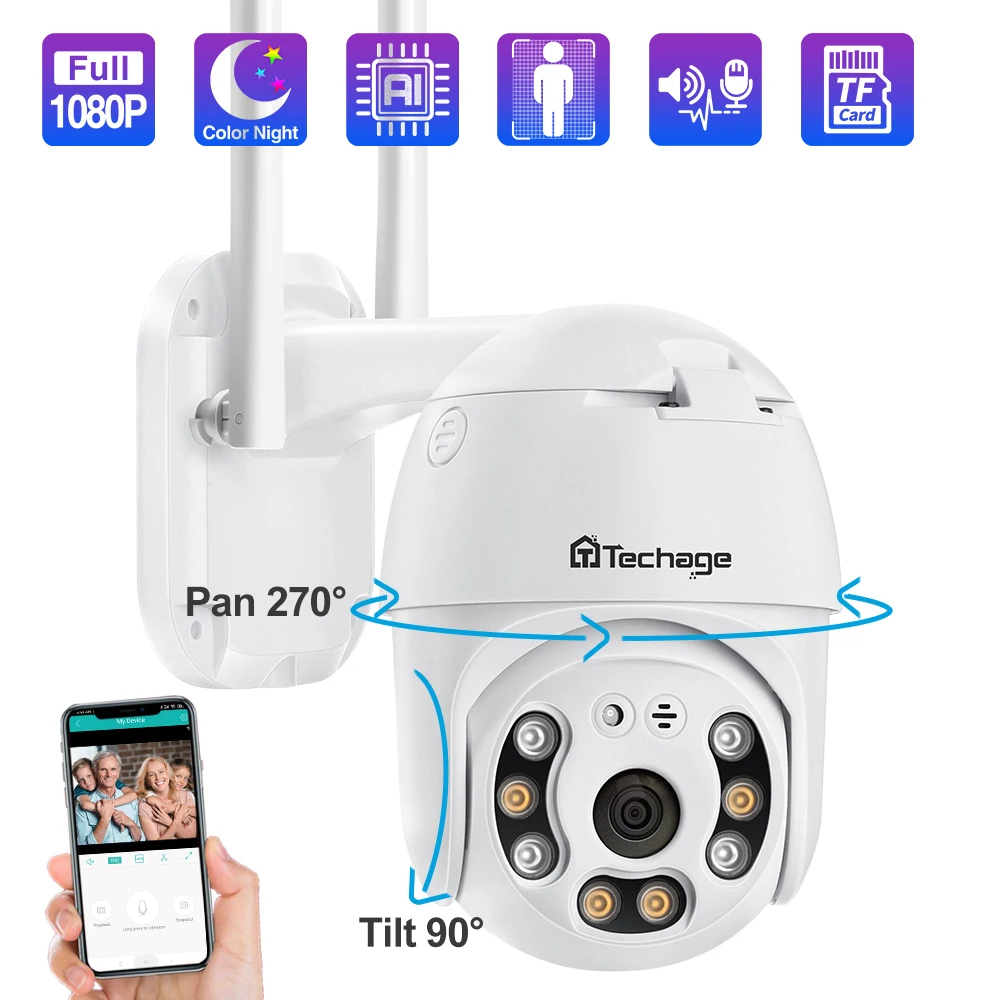 Беспроводная купольная камера видеонаблюдения Techage, 1080P, PTZ, 2 антенны, функция ночного видения
