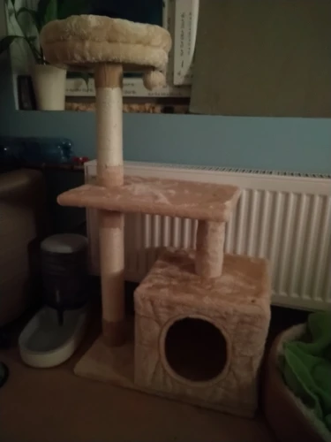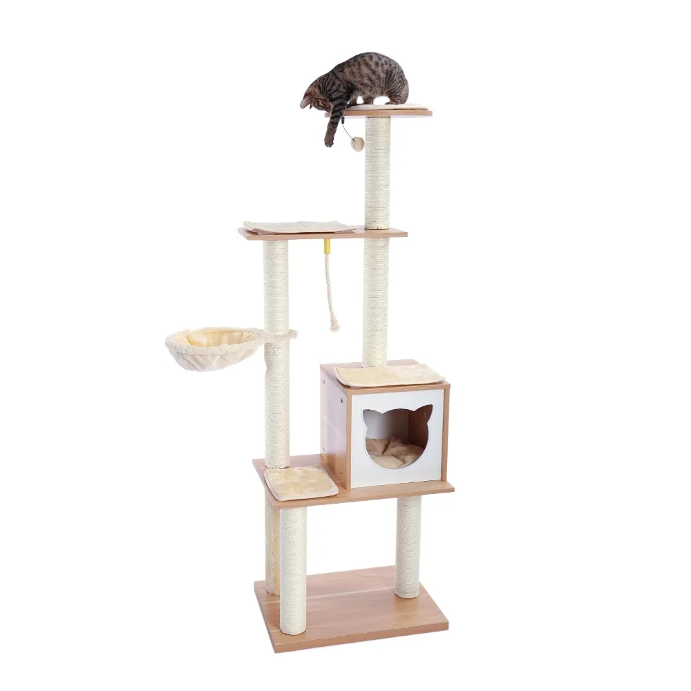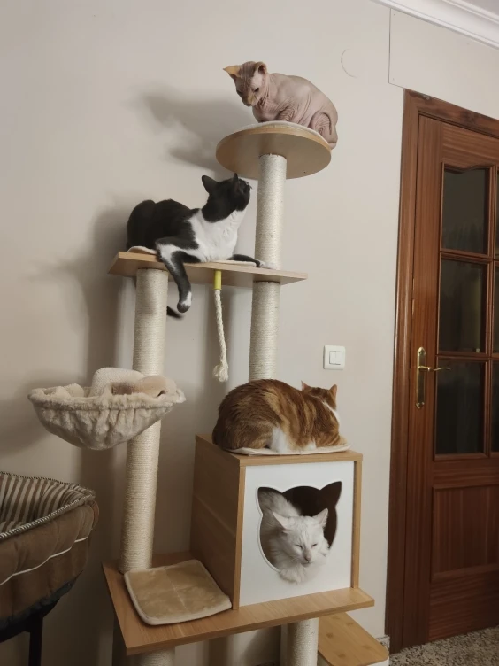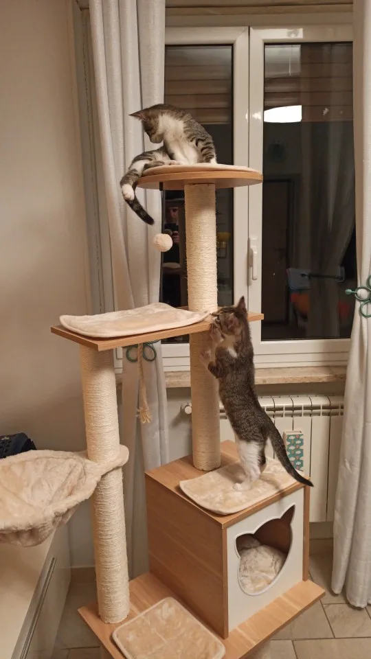 ·Забавная игра: Многоуровневый дизайн предлагает идеальный игровой домик для ваших кошек, чтобы свободно прыгать; Когтеточки и нижняя площадка покрыты натуральная сизалевая веревка избавляют вашу мебель от острых когтей