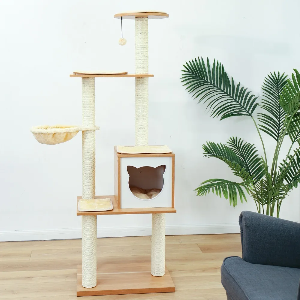 Прочный и безопасный: Стабильность всегда является приоритетом. Нижняя часть усилена, что обеспечивает стабильность всего кошачьего дерева
