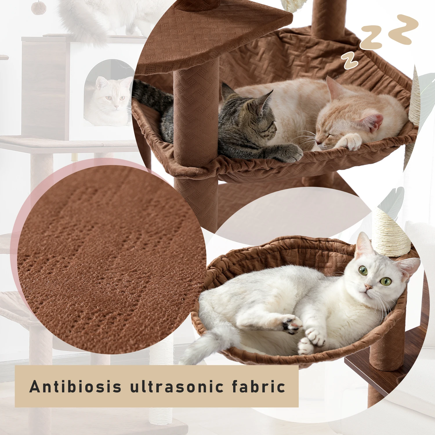 ·Идеальная игровая площадка: Многоуровневый дизайн предлагает достаточно места и разнообразие развлечений для ваших кошек. Плюшевое одеяло и мягкое гнездо создают несколько уютных мест для сна и отдыха. Сменный пушистый шар и сизальная веревка приносят дополнительную забаву.