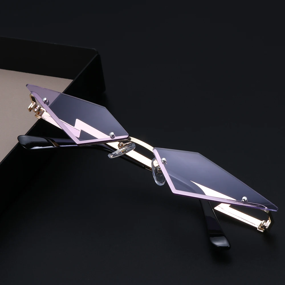 Модные солнцезащитные очки без оправы для женщин в форме бриллианта, солнцезащитные очки с настоящей пленкой, UV400, женские узкие солнцезащитные очки