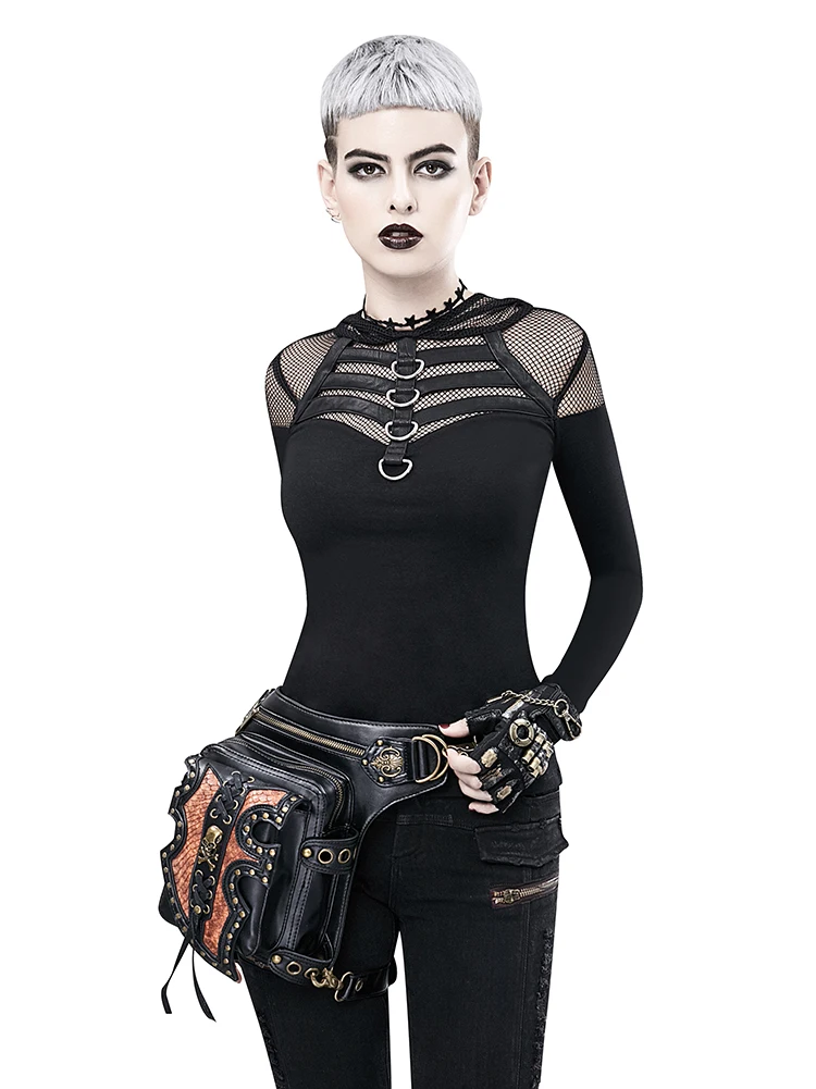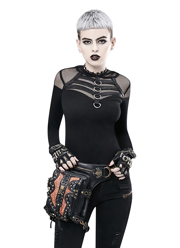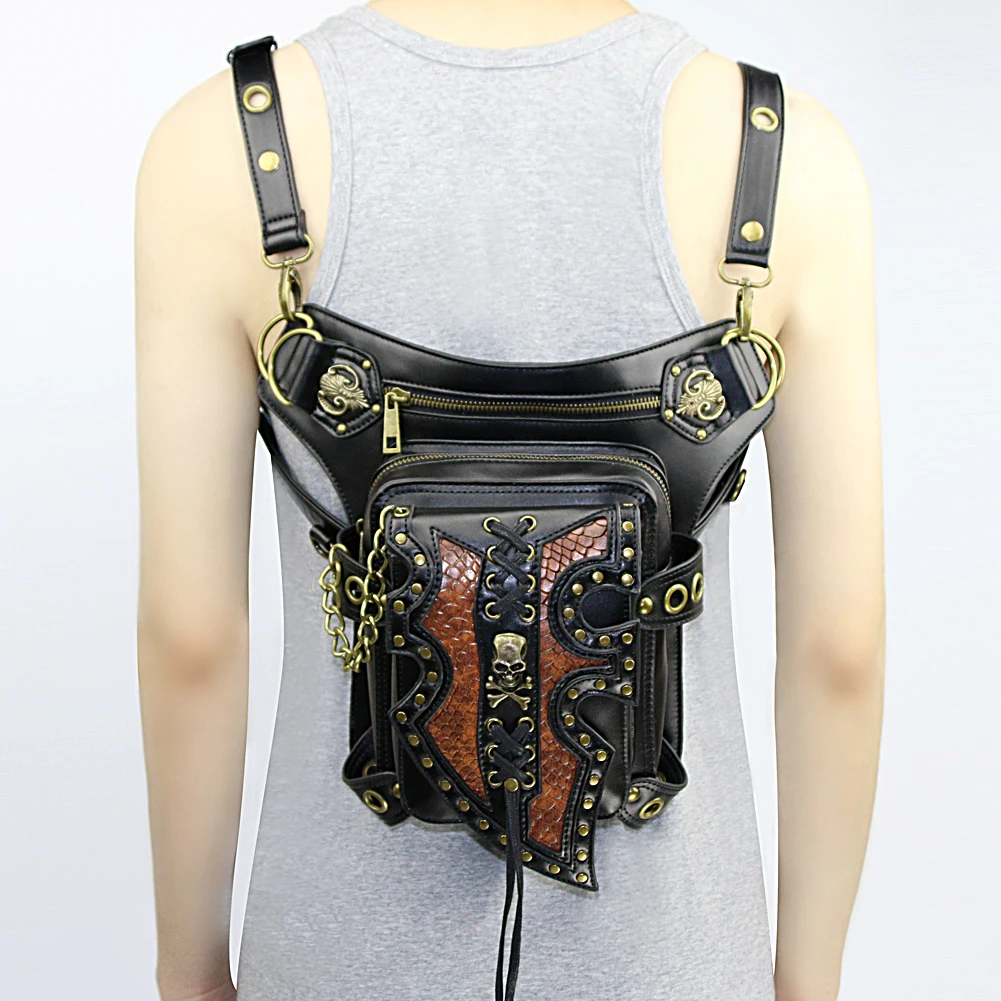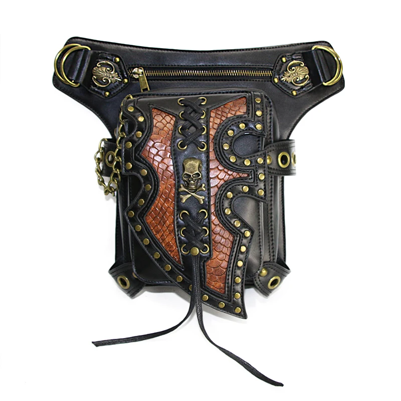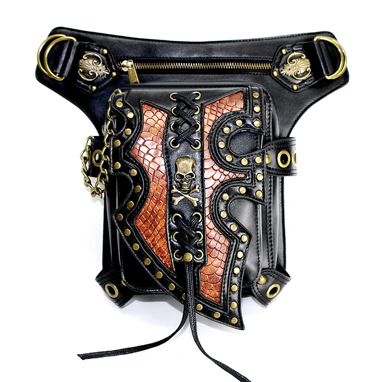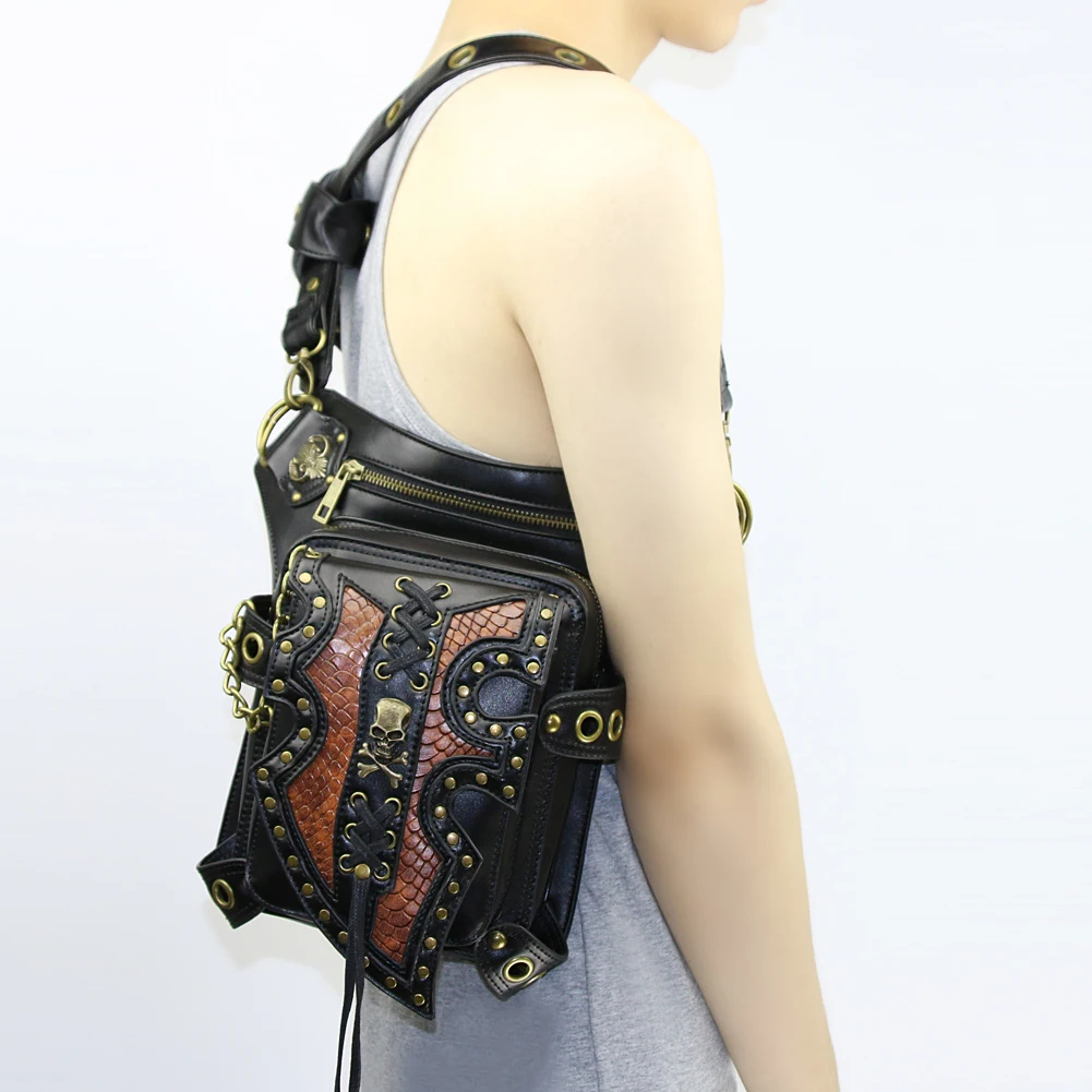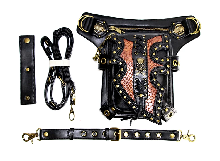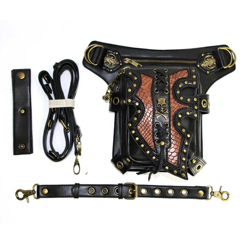 Поясная Сумка для женщин, черная, в стиле стимпанк, ретро-рок, Готическая, на плечо, поясная сумка, сумки на ногу мотоцикла, кожаные поясные сумки, готический мешок