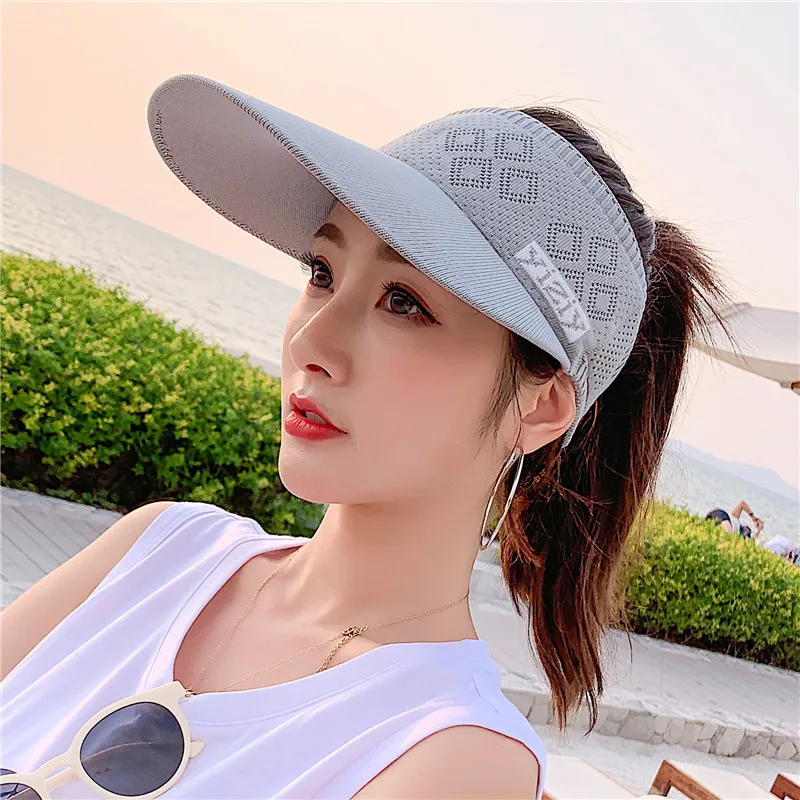 2022 Весна Лето Солнцезащитный козырек шляпы с широкими полями женские уличные пляжные солнцезащитные шапки Пустой Топ Новый