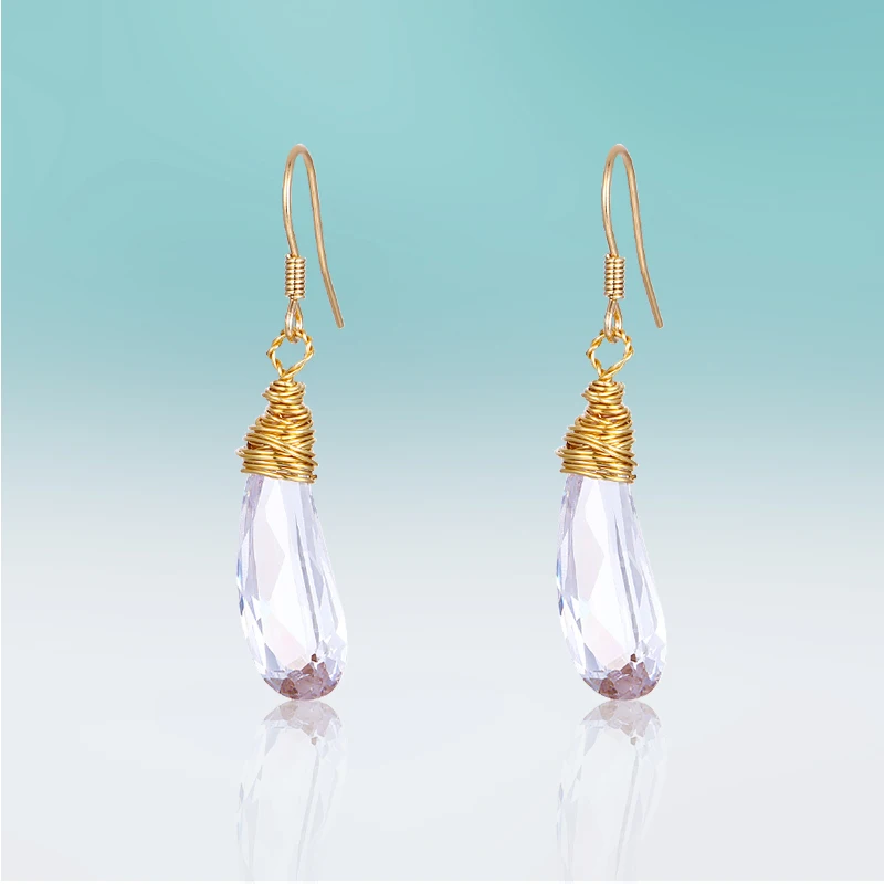 Простые темпераментные циркониевые золотые длинные висячие серьги с...