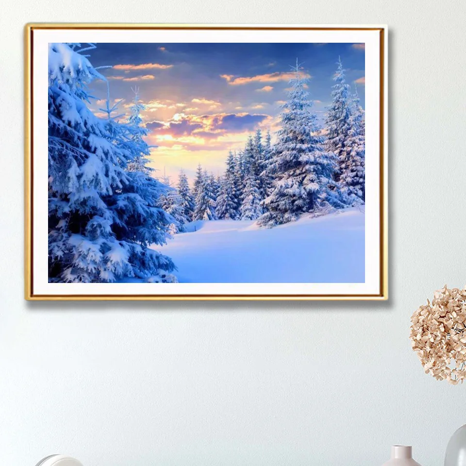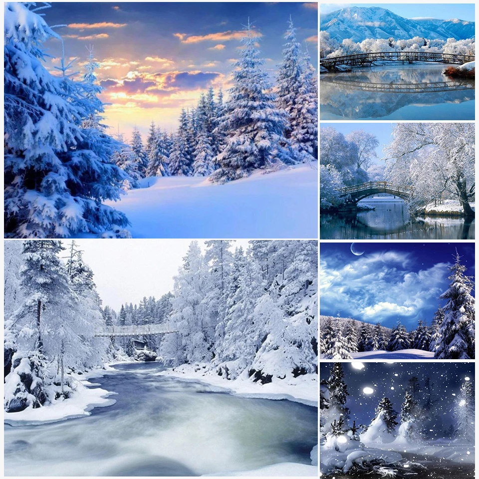 5D DIY алмазная живопись камни в форме ромба пейзажа зимний Бриллиантовая Вышивка Дерево картина Стразы Мозаика Кристалл Декор для дома подарок