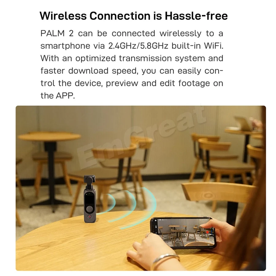 3-осевой Ручной Стабилизатор камеры FIMI PALM 2, широкоугольный, 128 , FPV, 4K, 100 Мбитс, Wi-Fi, шумоподавление 308 мин, микрофон, умная дорожка
