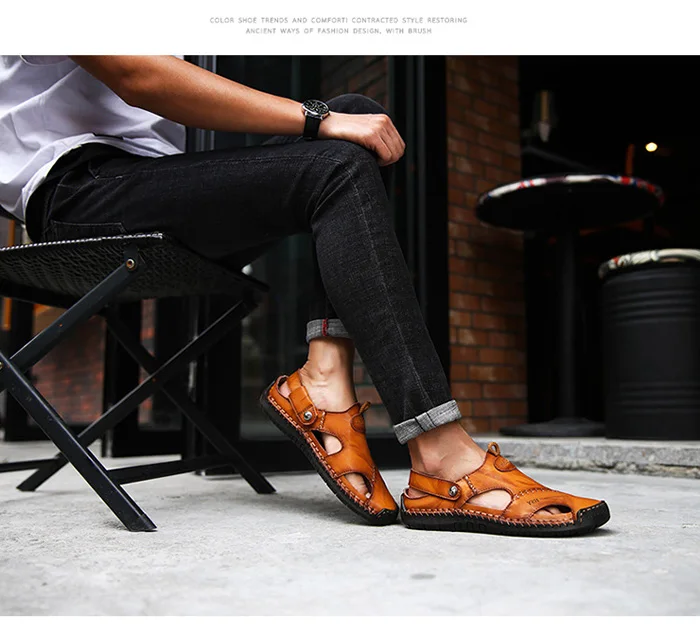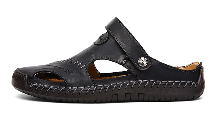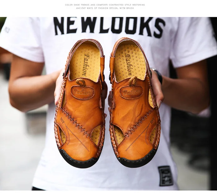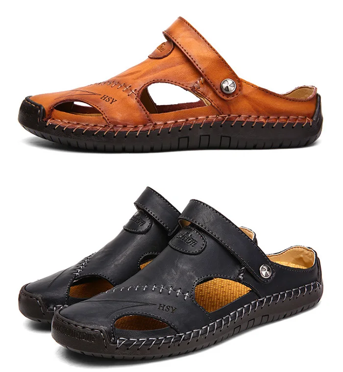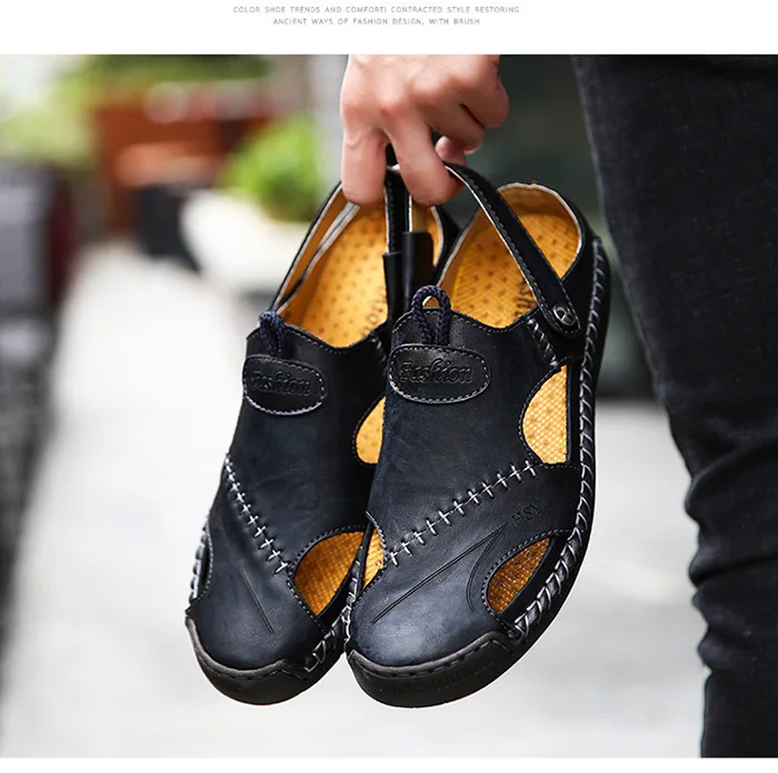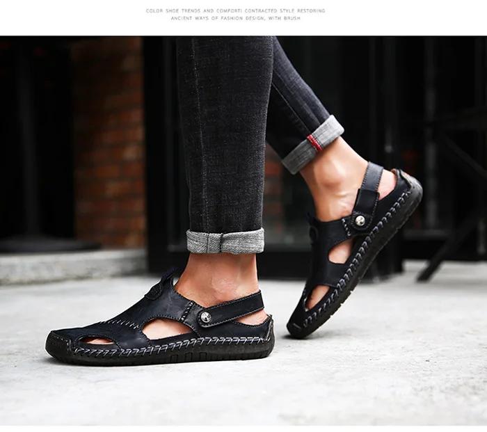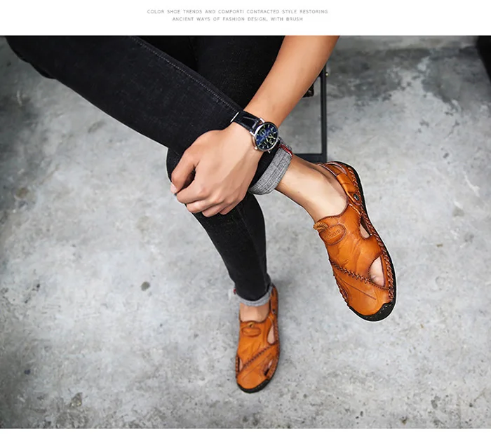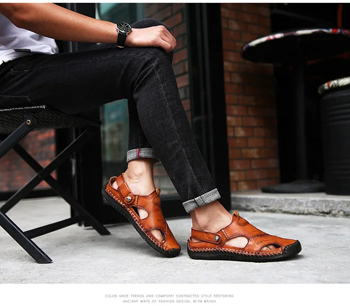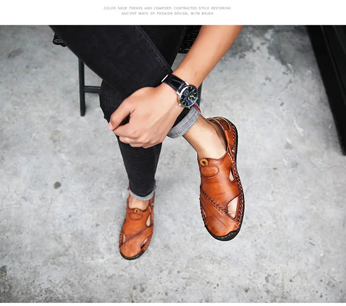 Летние мужские сандалии; Повседневная обувь из натуральной кожи; Мужская Уличная пляжная обувь из мягкие, удобные сандали кожи; Размеры 38-48