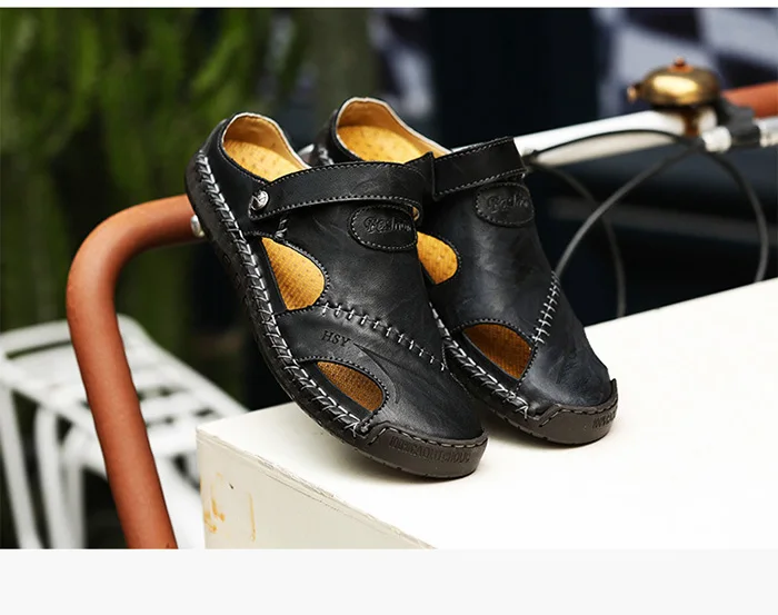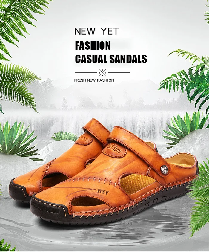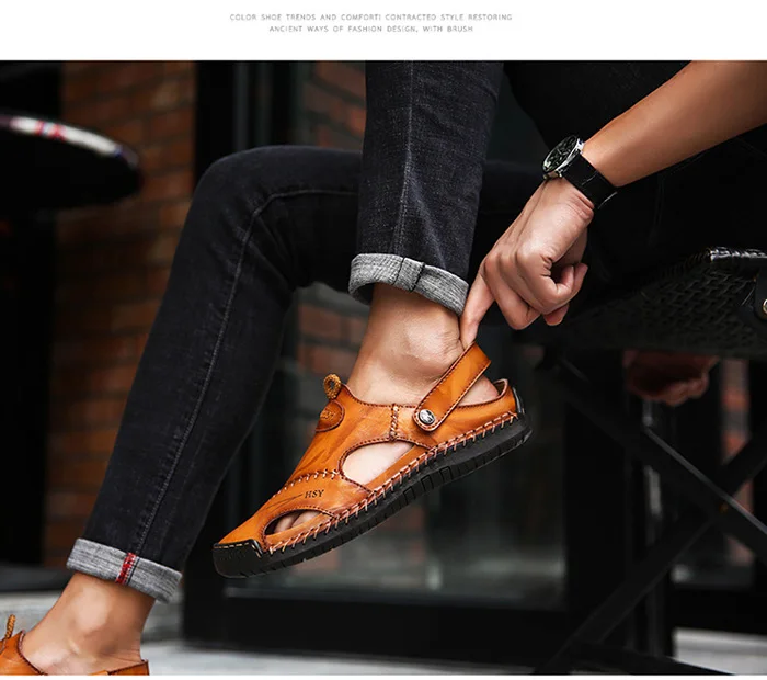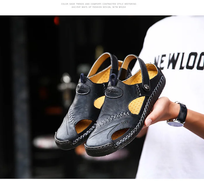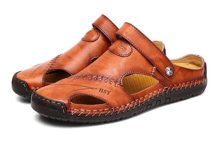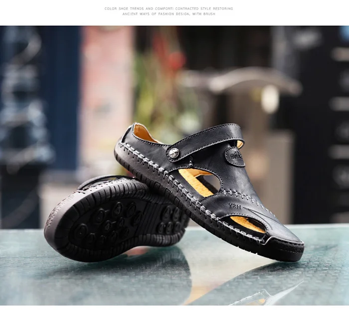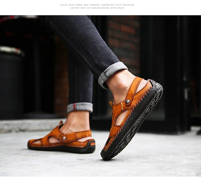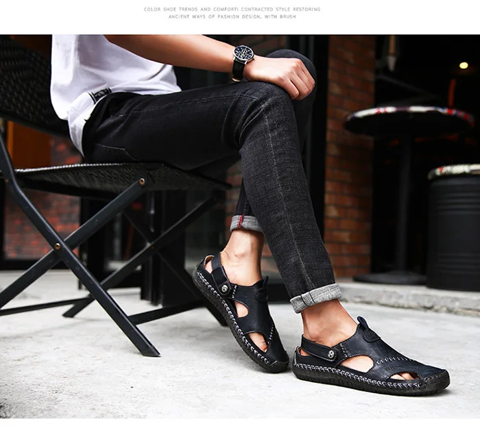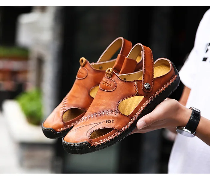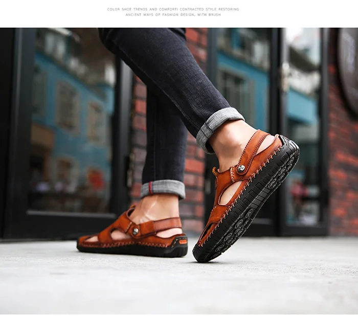 Летние мужские сандалии; Повседневная обувь из натуральной кожи; Мужская Уличная пляжная обувь из мягкие, удобные сандали кожи; Размеры 38-48