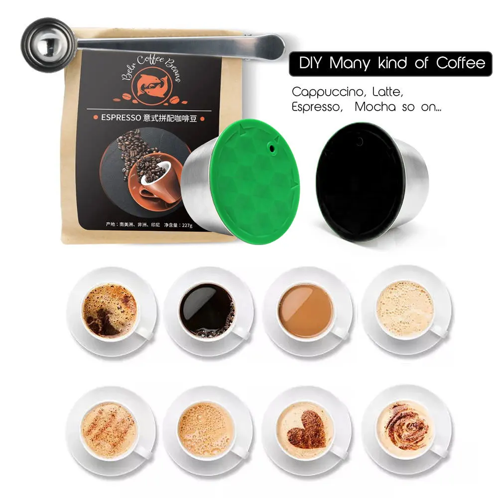 Многоразовая многоразовая капсула iCafilas, многоразовая капсула для кофе Nescafe Dolce Gusto с крышкой, металлическая ложка Фильтр-чашка