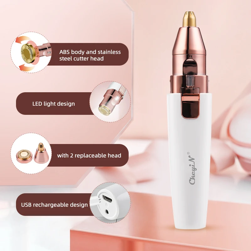 2 в 1 USB Перезаряжаемый эпилятор для удаления волос, Женский Триммер для бровей со светодиодной подсветкой, Женская бритва, бритва для лица, ног, бикини, депилятор, MT090-50