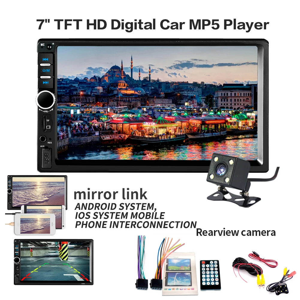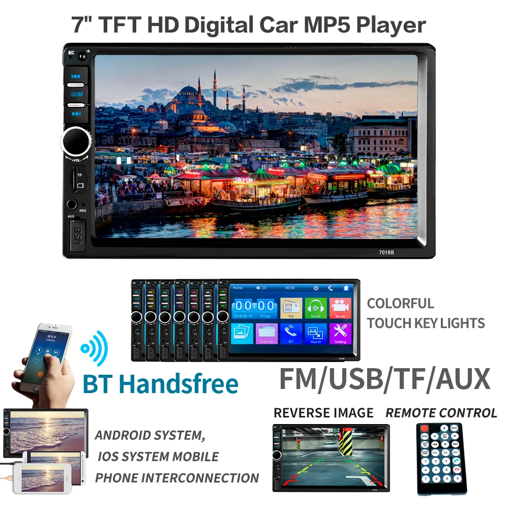 Автомобильный мультимедийный проигрыватель 7018B, 7 дюймов, HD, Bluetooth, Автомобильная камера заднего вида