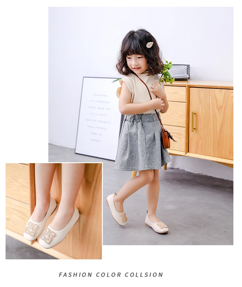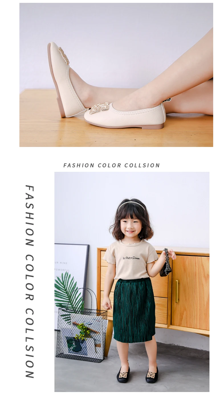 Туфли JY детские из искусственной кожи для девочек, повседневная обувь на плоской подошве, черные и бежевые, 21-36, TB02