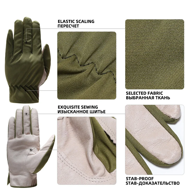 Изготовлено из высококачественной кожи средней толщины, мягкой и эластичной. Ладонь обладает повышенной износостойкостью, а эластичный ремешок может держать пыль и мусор внутри перчаток, делая перчатку более близкой к руке. Дизайн GON cut и KEYSTON thumb-перчатки Gunn cut обладают отличной прочностью и гибкостью, потому что шов начинается с ладони. Уменьшите напряжение в шве, и наш дизайн большого пальца Keystone для изготовления перчаток. Сделайте ваши руки более гибкими и двигайтесь более свободно. Из-за естественного дышащего материала он удобно впитывает пот.