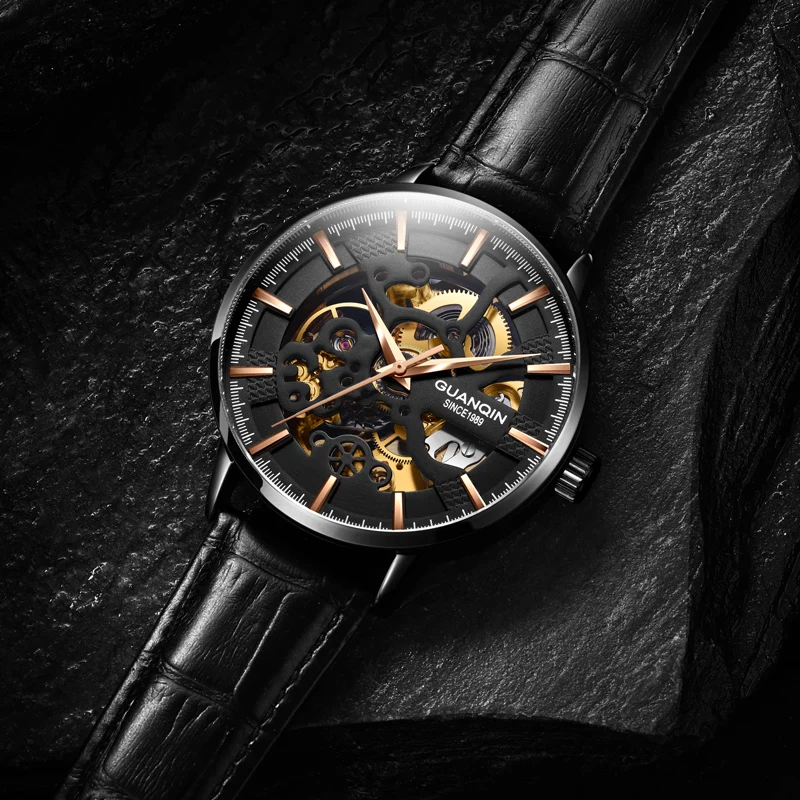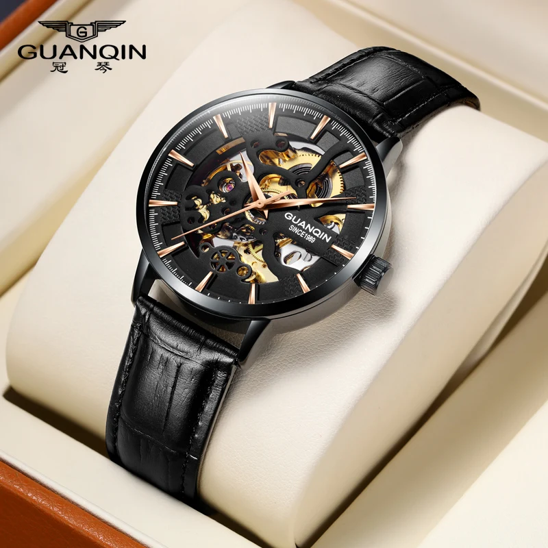 GUANQIN2020 новые мужские часы, автоматические механические золотистые часы-скелетоны, ретро мужские часы, мужские часы, лучший бренд класса люкс