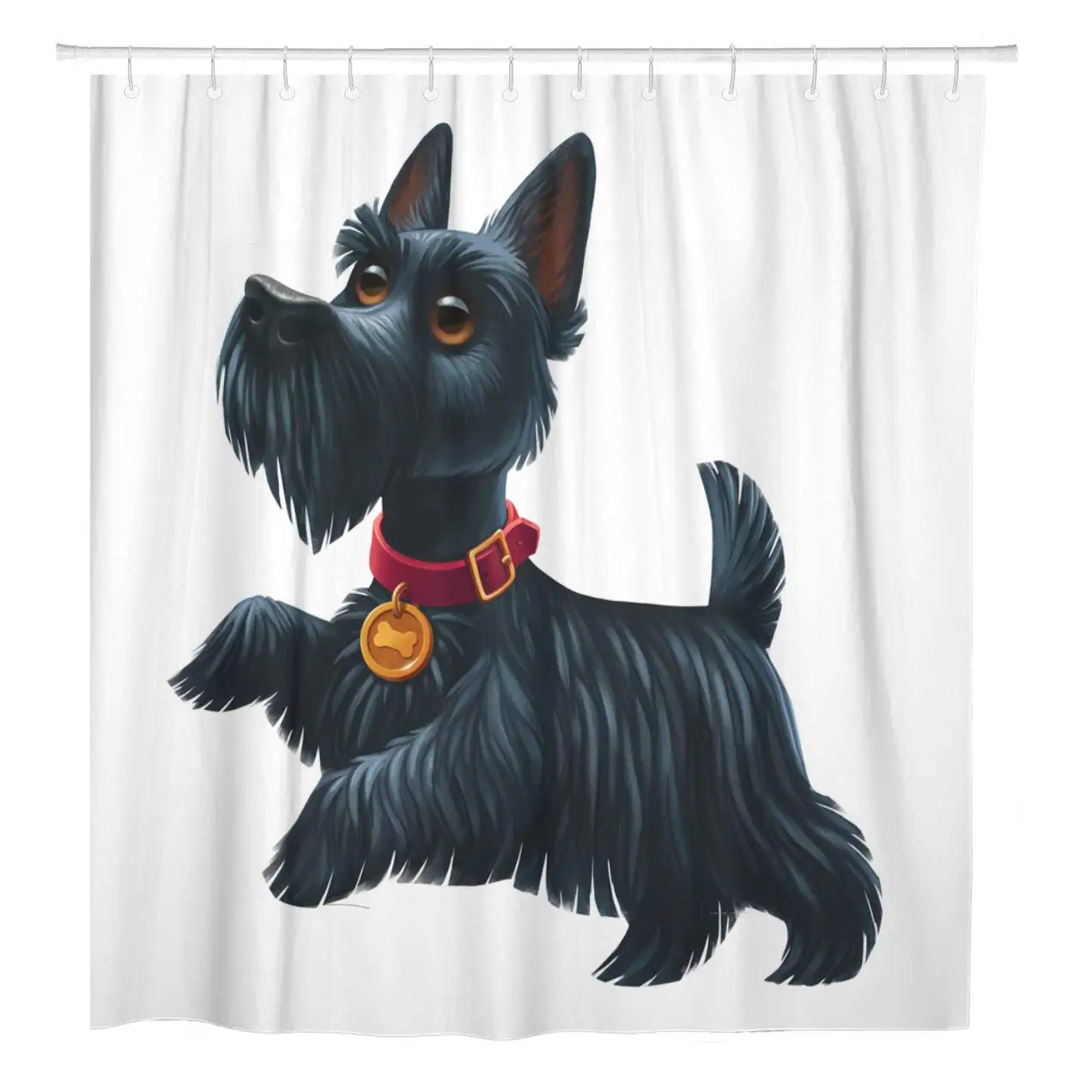 Животные черный шотландский терьер порода собака красный воротник цифровой душ занавес Водонепроницаемый полиэстер ткань 72x78 дюймов набор