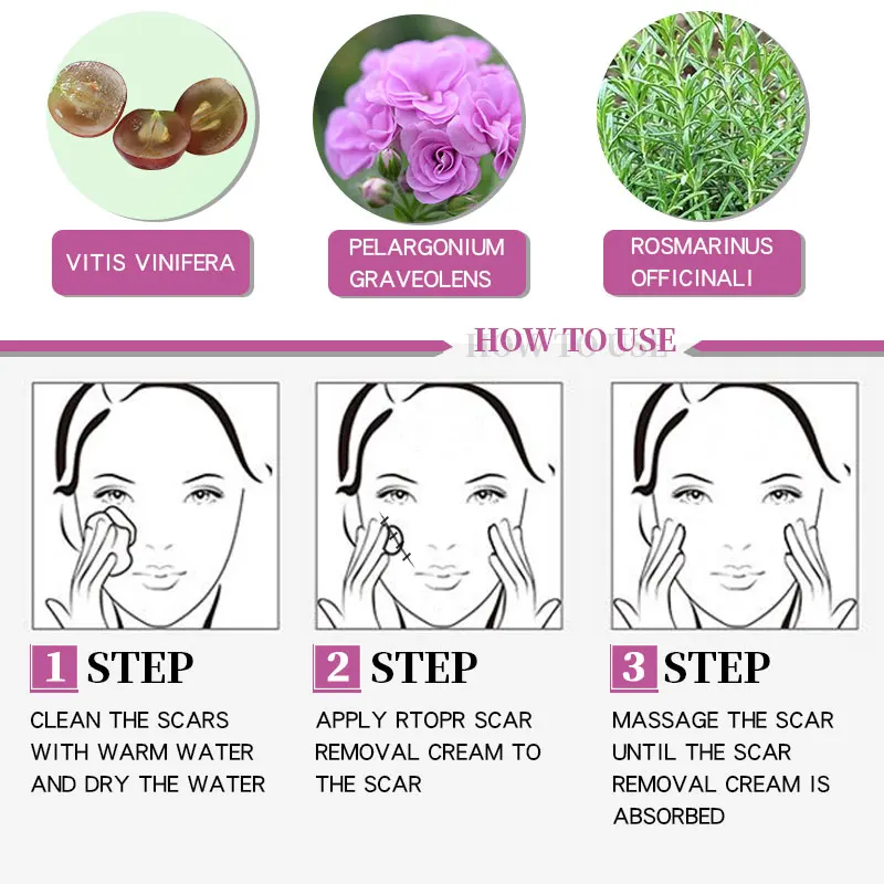 Он может ускорить регенерацию клеток, делая ее эффективной при лечении шрамов, оставленных травмой и ожогами. Разнообразные растения фруктовое масло эссенция, богатая разнообразными питательными веществами, необходимыми для кожи, может просачиваться по коже. Он способен ускорить выработку коллагена, чтобы восстановить сломанные коллагеновые эластичные волокна, вызванные старением, наконец достичь эффекта удаления рубцов.