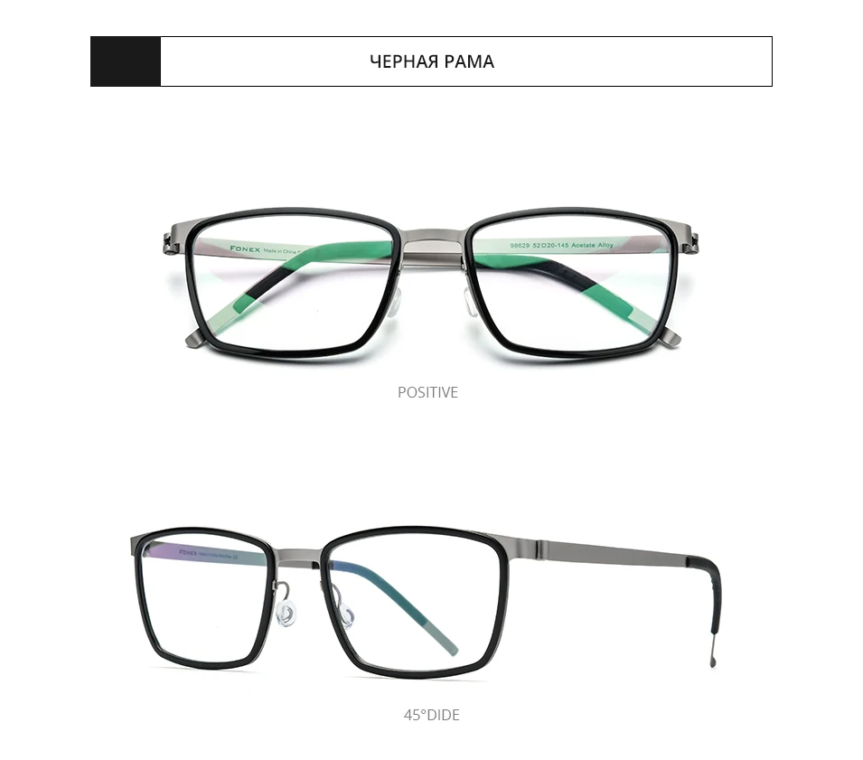 FONEX Оправа для очков Мужская из ацетатного сплава, без винтов, 2020