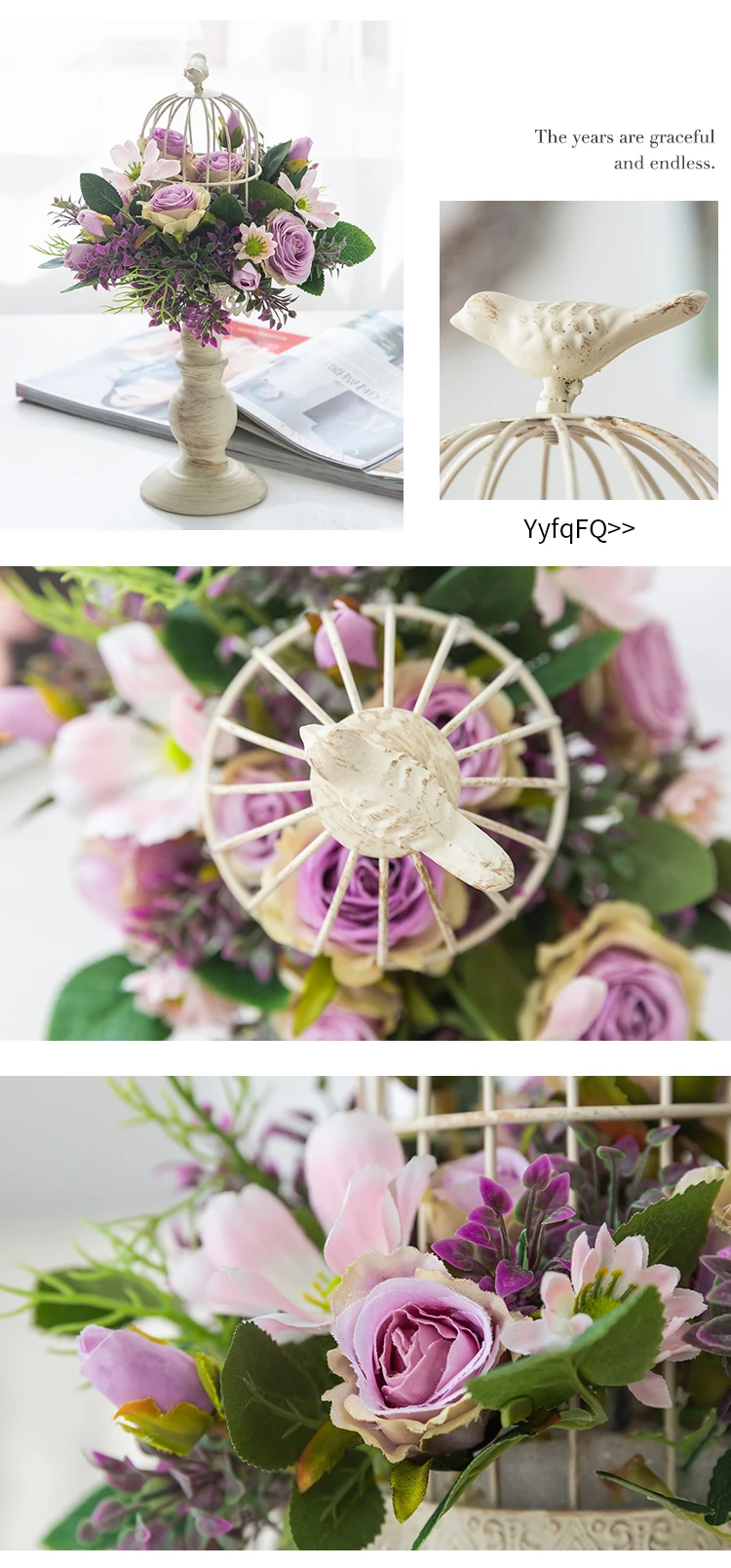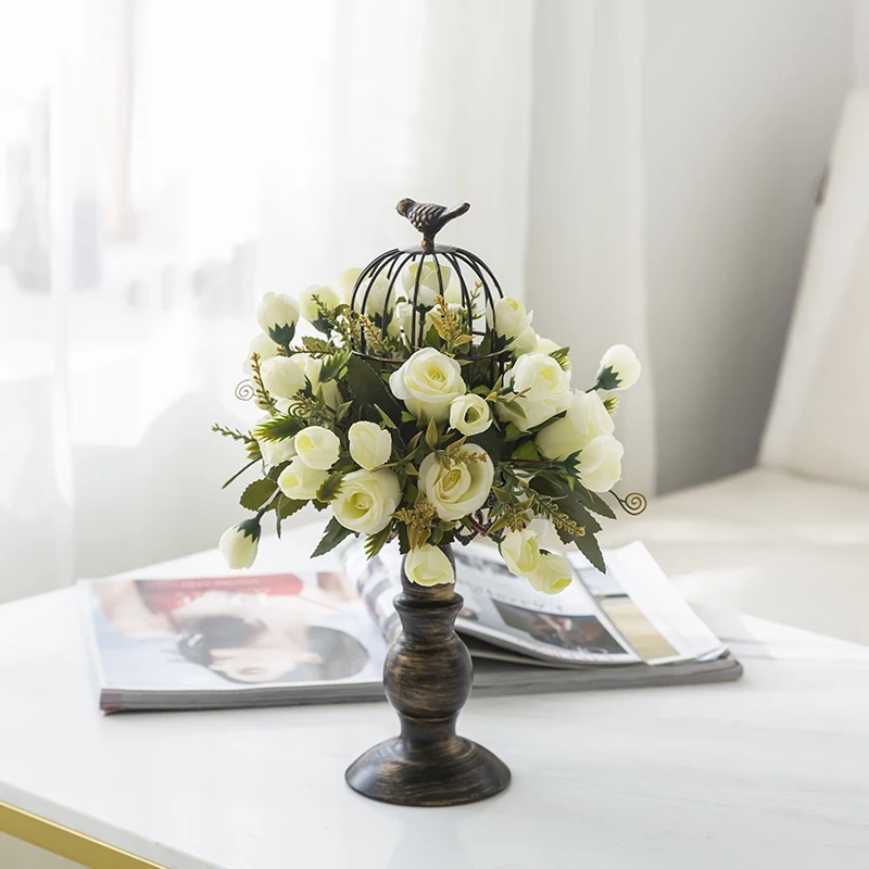 Цветочное украшение в виде птичьей клетки, реквизит в стиле ретро, искусственный цветок для гостиной, столовой, столовой, рабочего стола, украшение для цветов