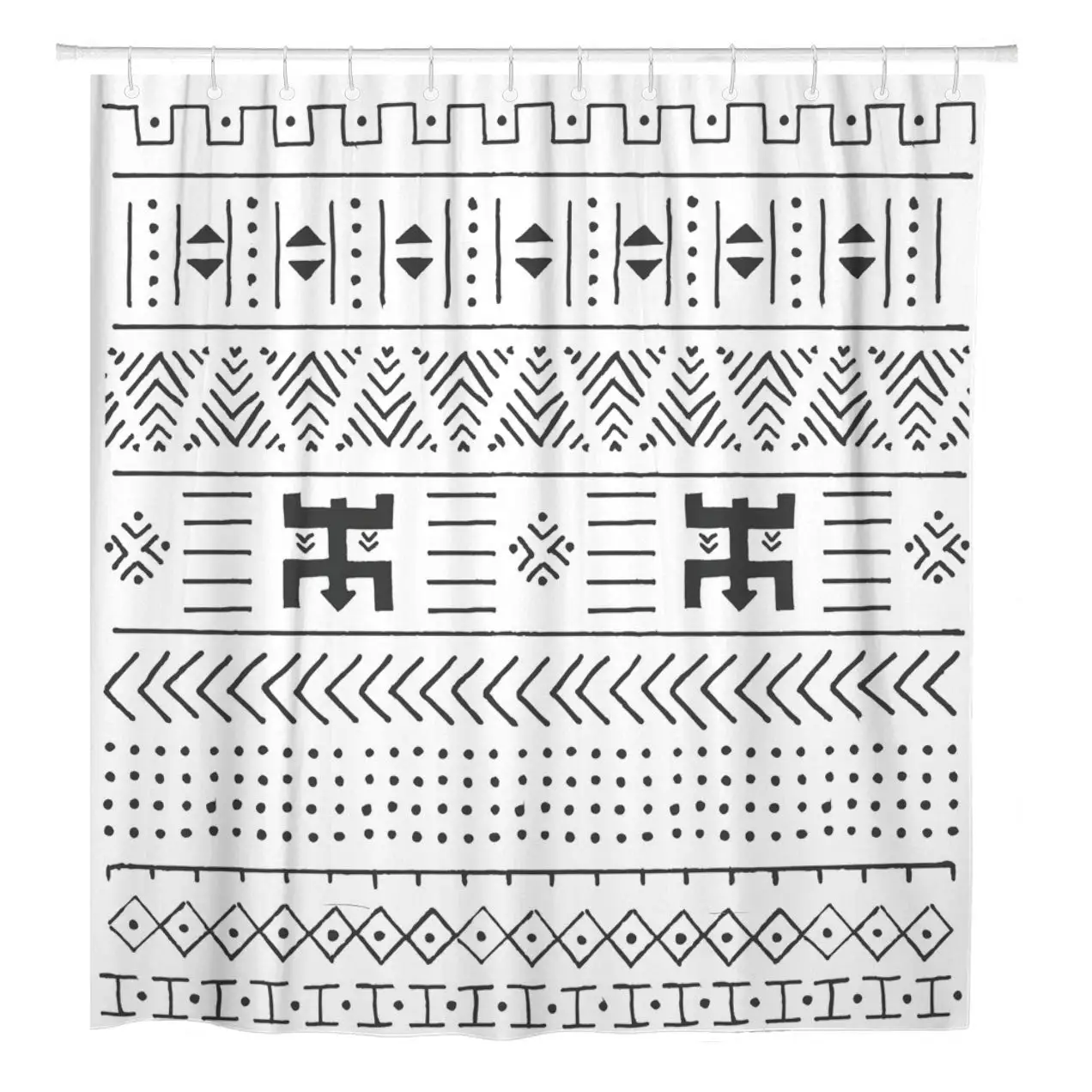 Черно-белый этнический узор, геометрический традиционный африканская занавеска для душа, водонепроницаемая полиэфирная ткань 60x72 дюйма
