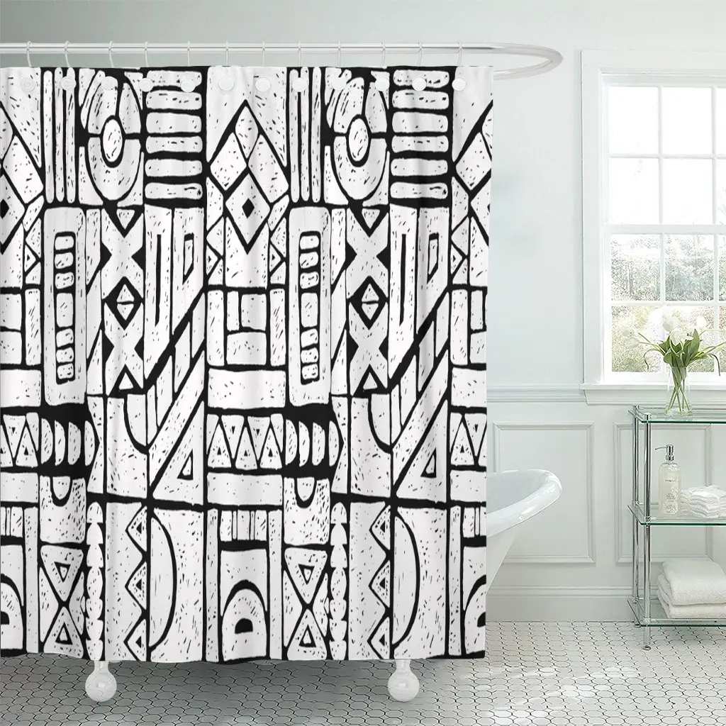Этническая черная белая красная душевая занавеска, вдохновленная ук...
