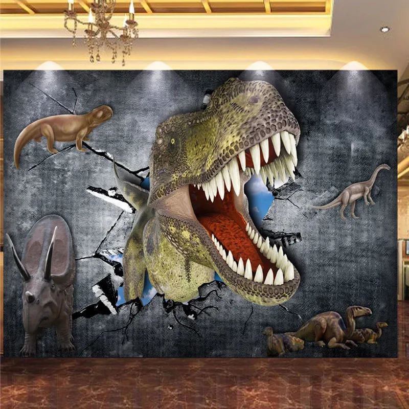 Самоклеящиеся Настенные обои на заказ, 3D стерео обои с динозаврами, животными, для детской спальни, бара, фоновые настенные 3D наклейки на стену